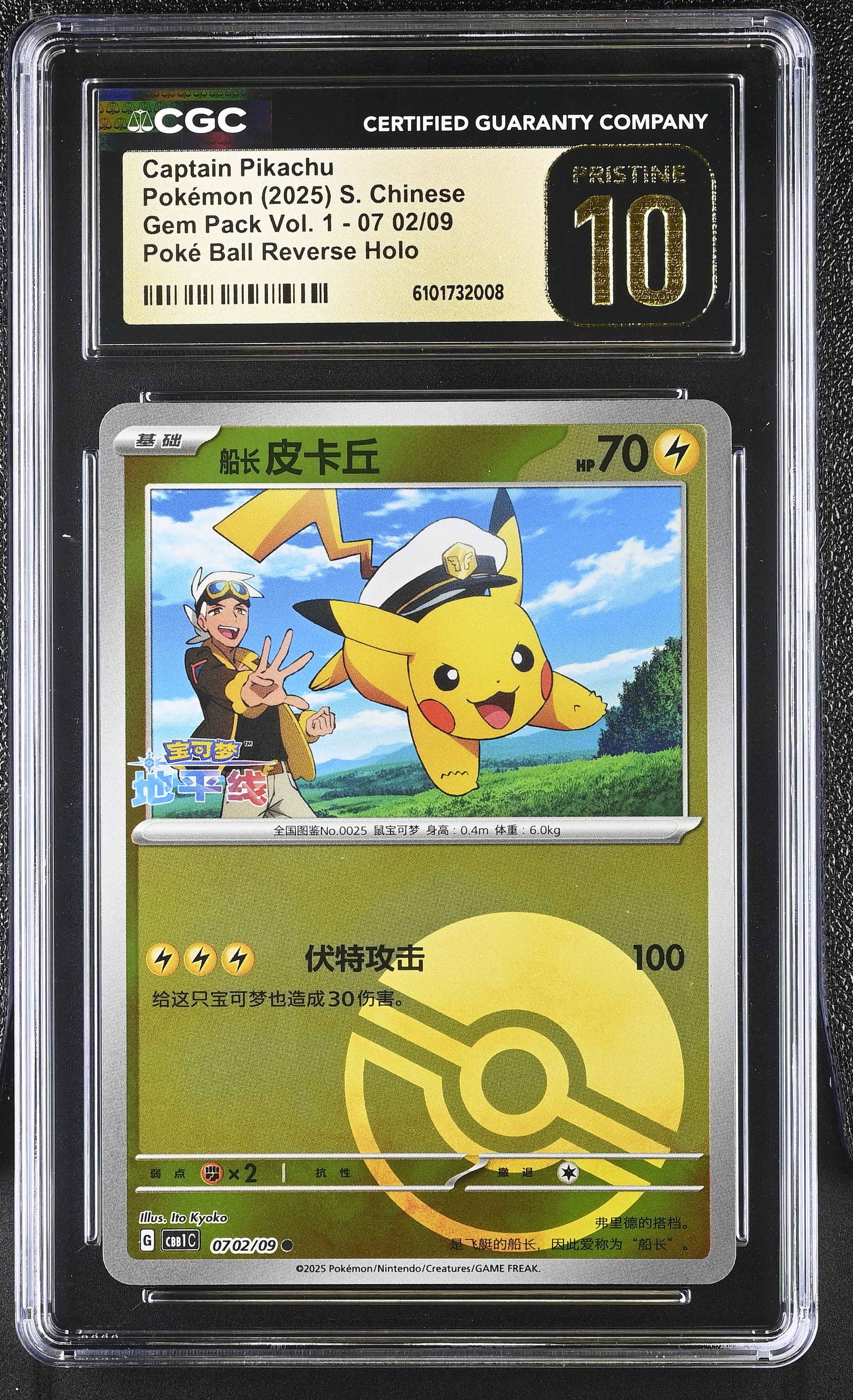 Captain Pikachu 2025 Pokemon TCG Scarlet & Violet Gem Pack Vol.1 Simplified Chinese #0702 Poke Ball Holo (CGC 10 | Black Label)