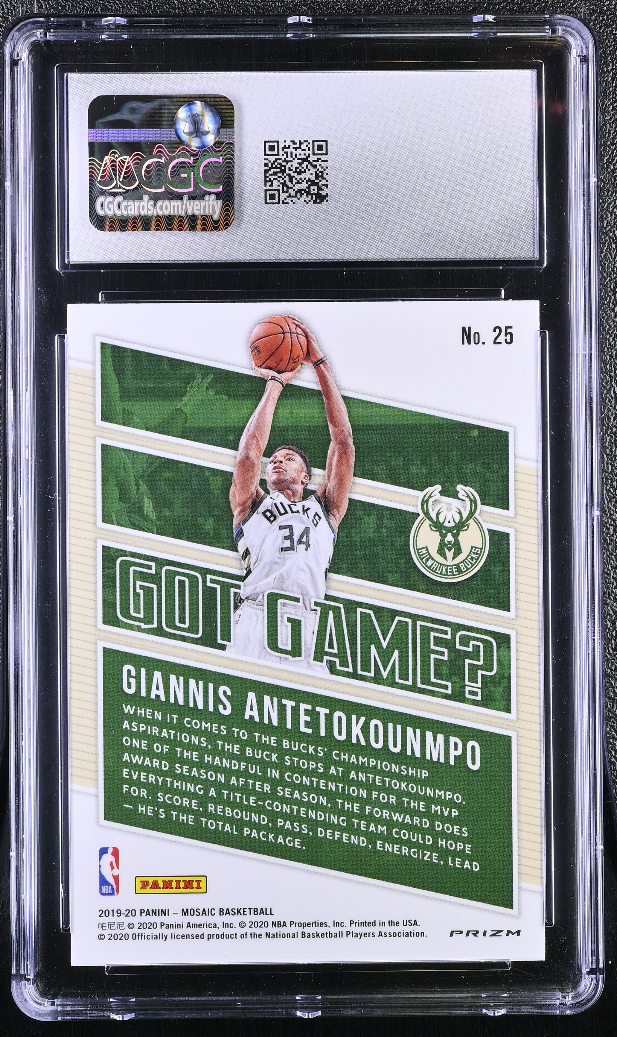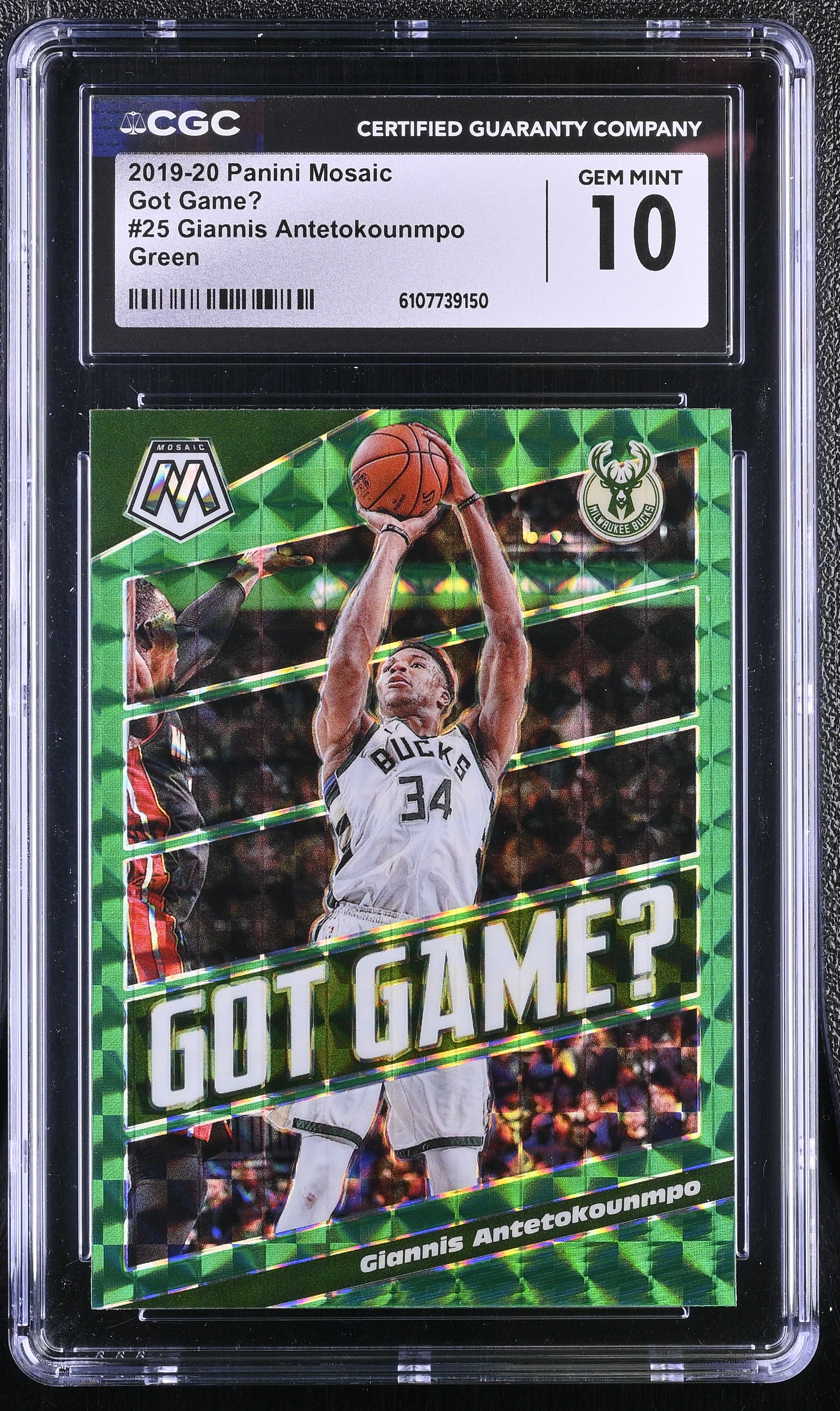 Giannis Antetokounmpo 2019-20 Panini Mosaic Got Game? Mosaic Green #25 (CGC 10)