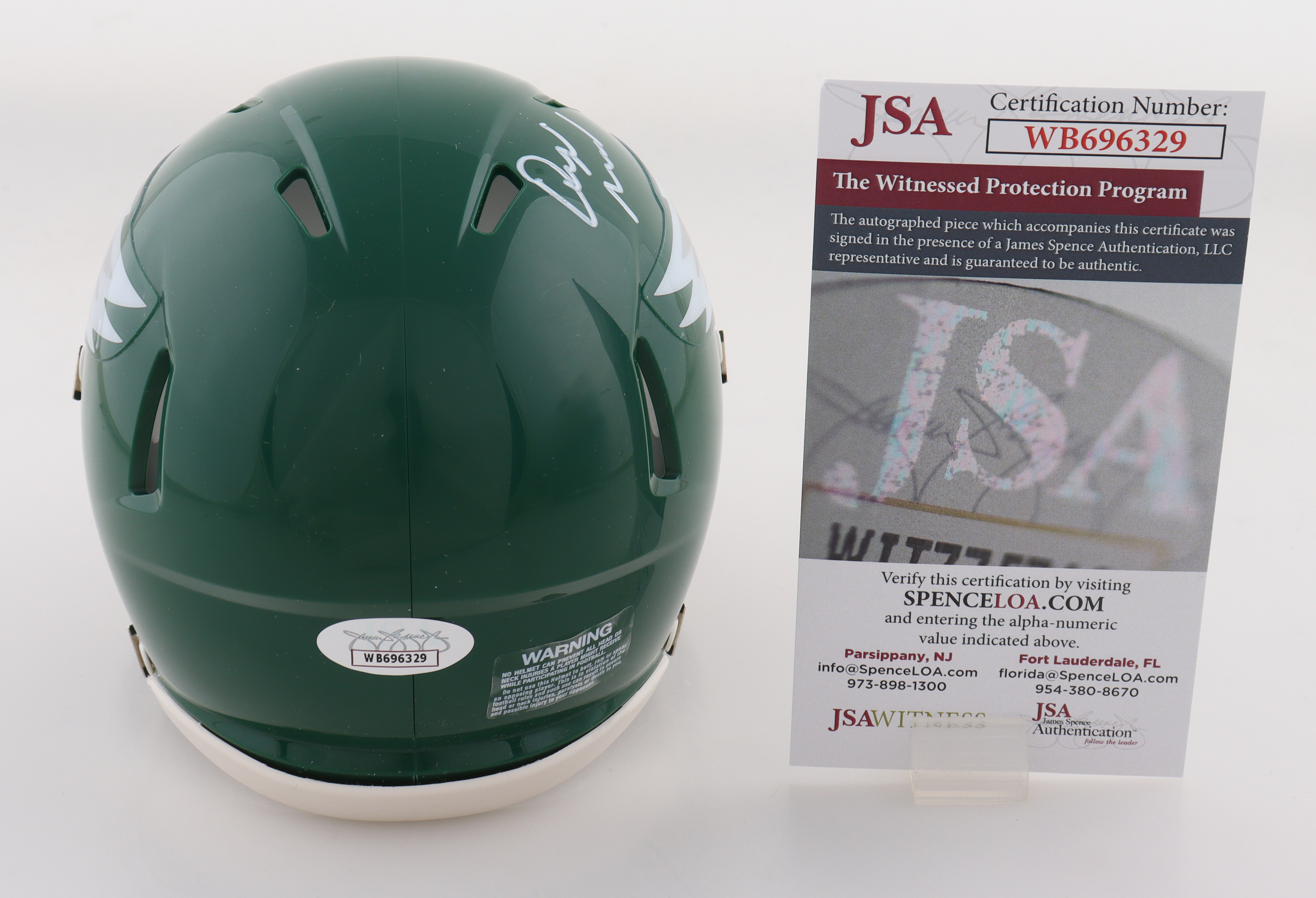 Riddell Philadelphia Eagles Kelly Green Alternate Speed mini helmet. Hand-signed by Quinyon Mitchell.