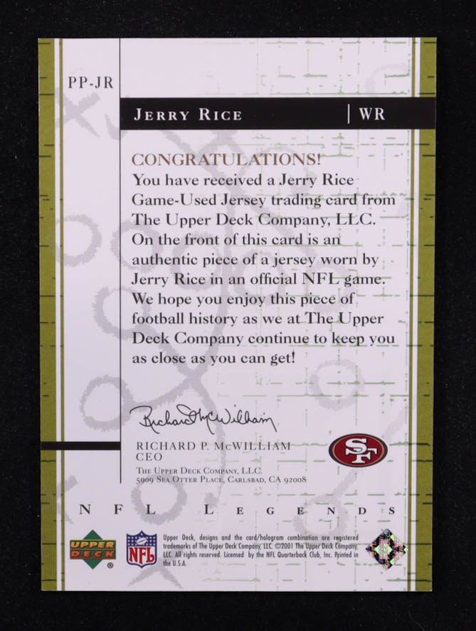 Jerry Rice 2001 Upper Deck Legends Past Patterns Jerseys #PPJR