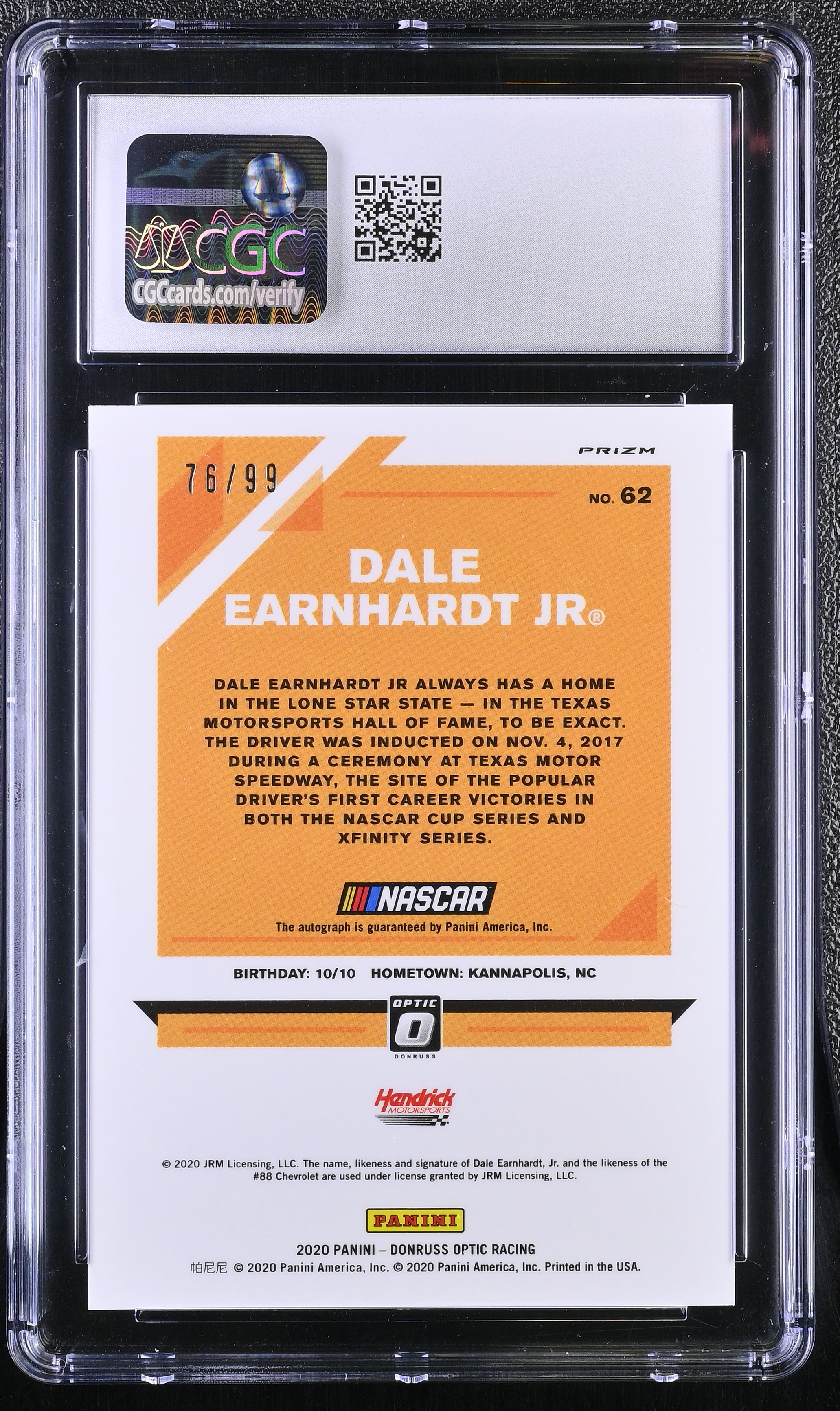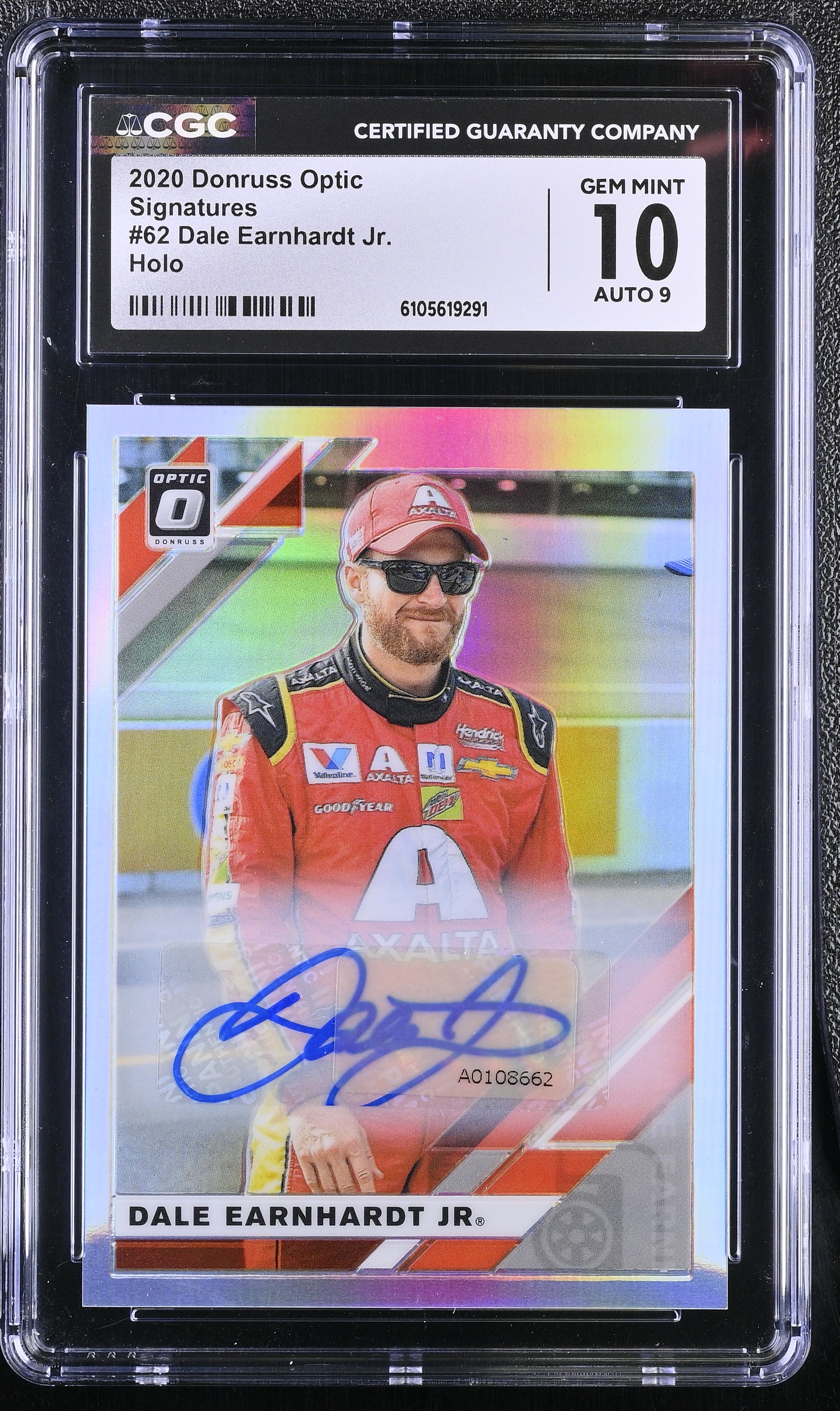 Dale Earnhardt Jr. 2020 Donruss Optic Signatures Holo #62 #76/99 (CGC 10 | Autograph Grade 9)