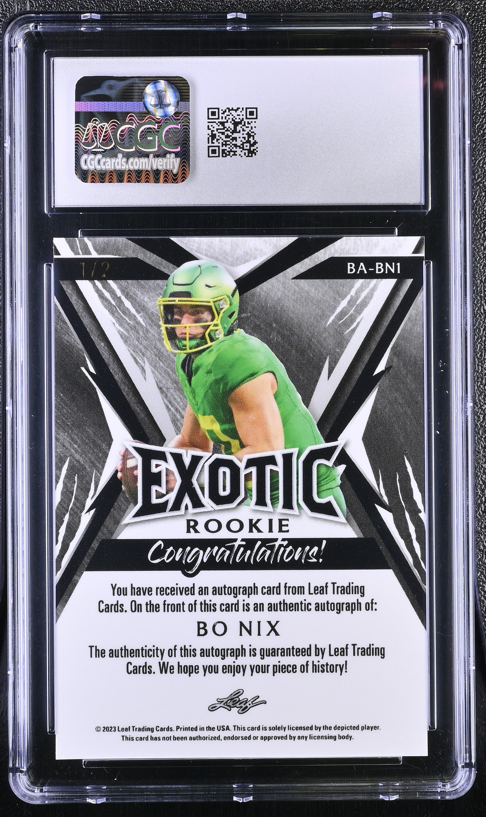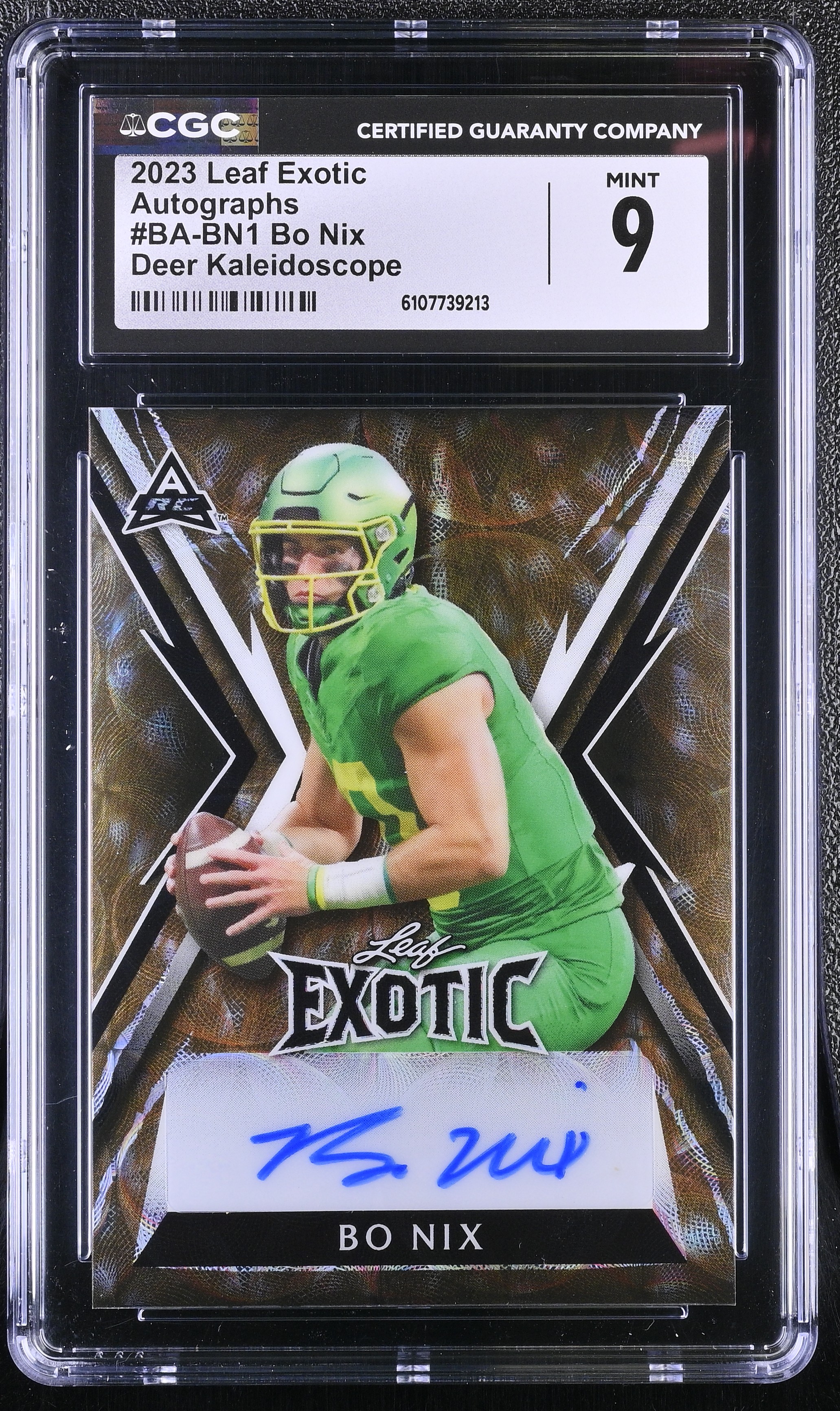 Bo Nix 2023 Leaf Exotic Kaleidoscope Deer #BABN1 RC #1/2 (CGC 9)