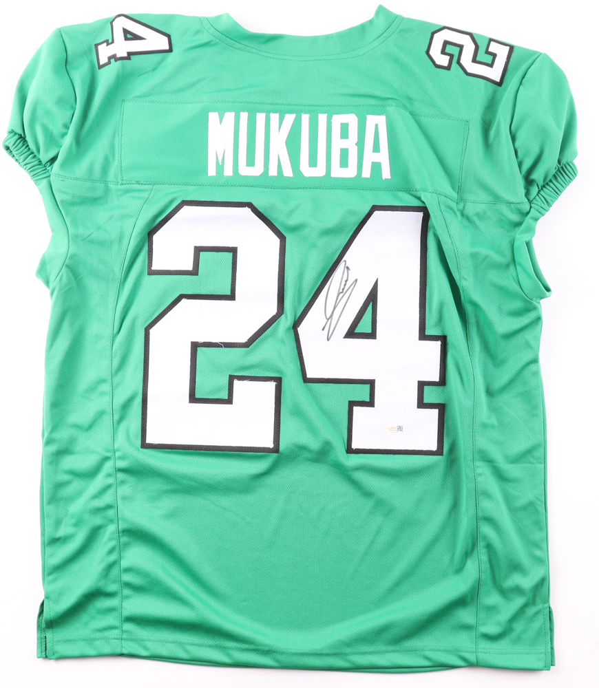 Custom jersey with everything sewn on, size XL. Hand-signed by Andrew Mukuba.