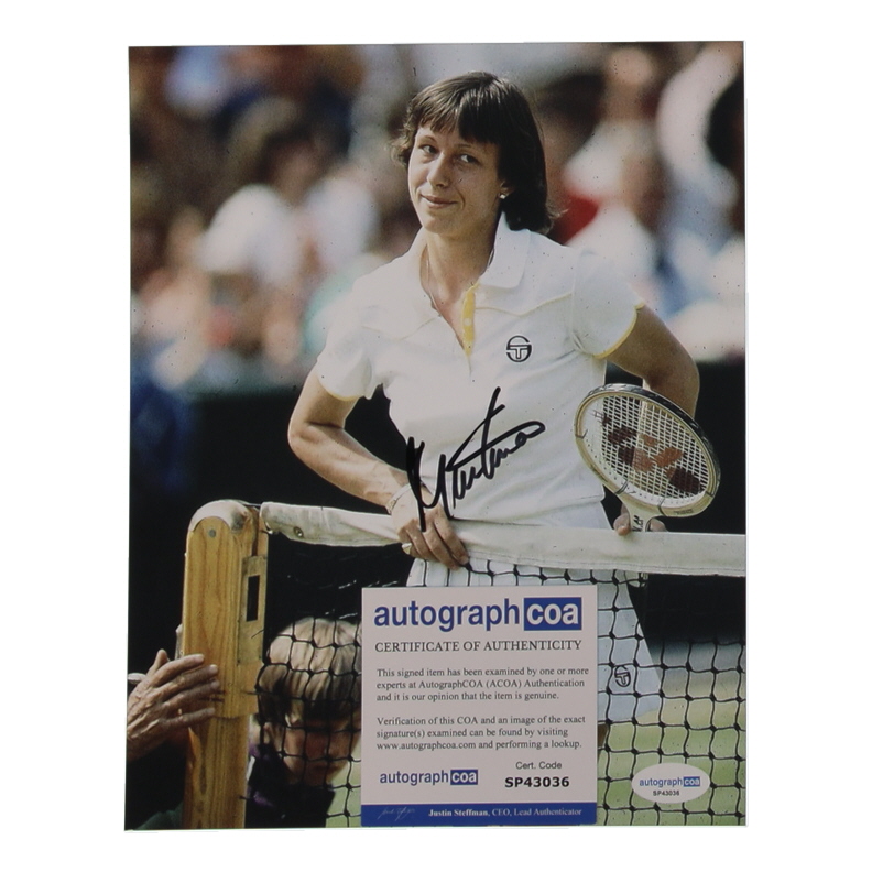 Photo measures 8" x 10" in size and has been hand-signed by Martina Navratilova.