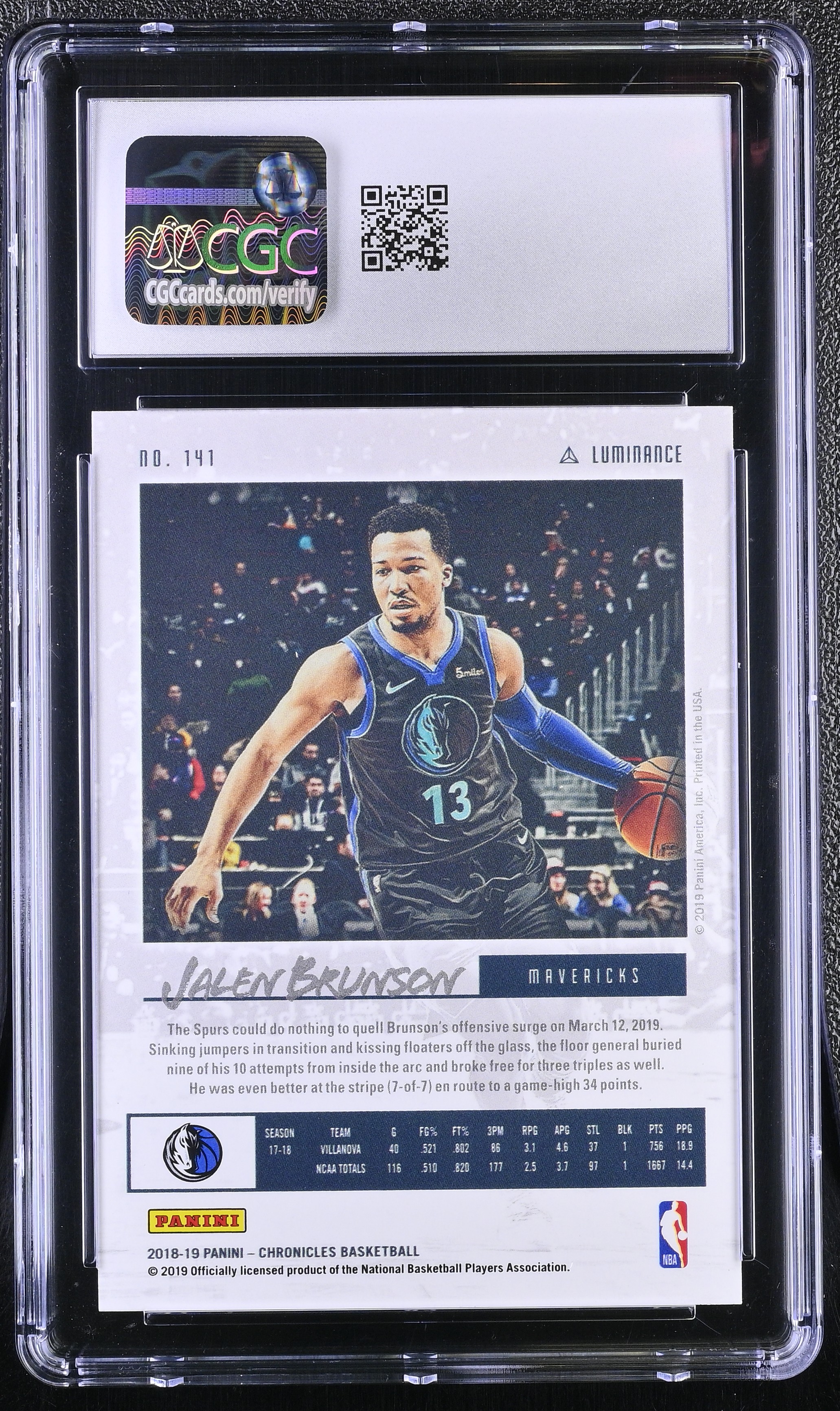 Jalen Brunson 2018-19 Panini Chronicles #141 RC / Luminance (CGC 10)