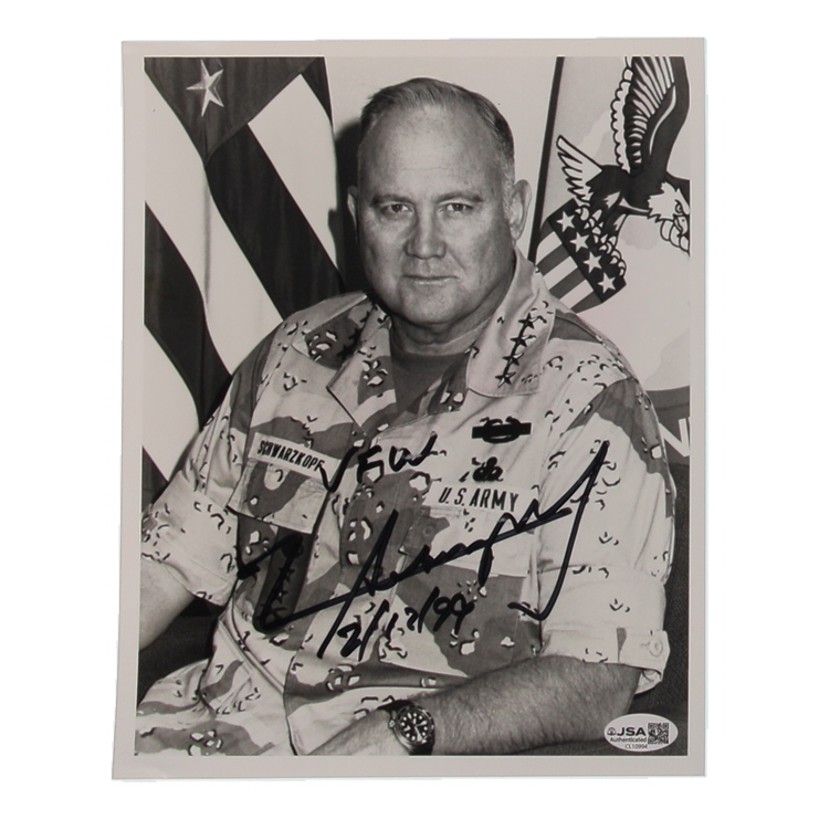 Photo measures 8" x 10" in size. Hand-signed and inscribed by Norman Schwarzkopf (D. 2012).