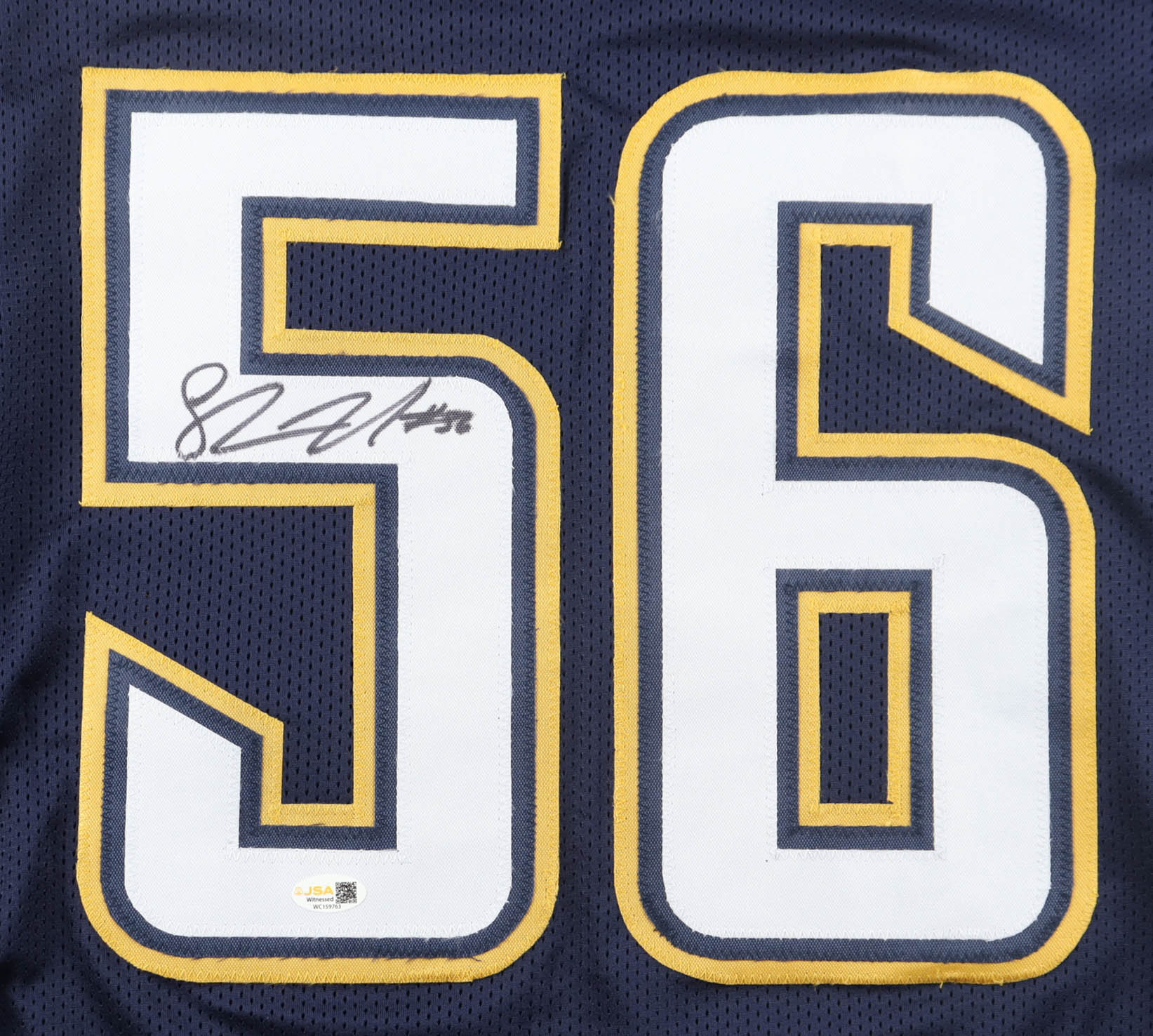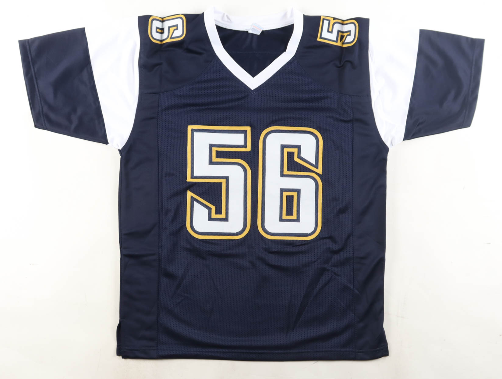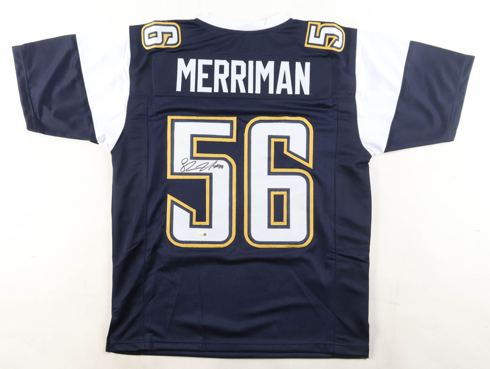 Custom jersey with everything sewn on, size XL. Hand-signed by Shawne Merriman.