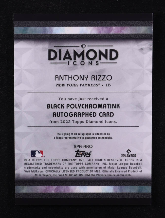 Anthony Rizzo 2023 Topps Diamond Icons Black Polychromatink Autographs Black Silver Ink #BPAARO #05/10