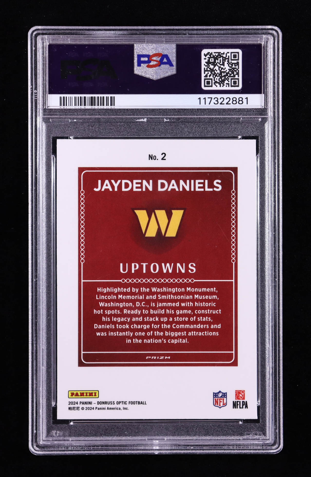 Jayden Daniels 2024 Donruss Optic Uptowns #2 RC (PSA 9)