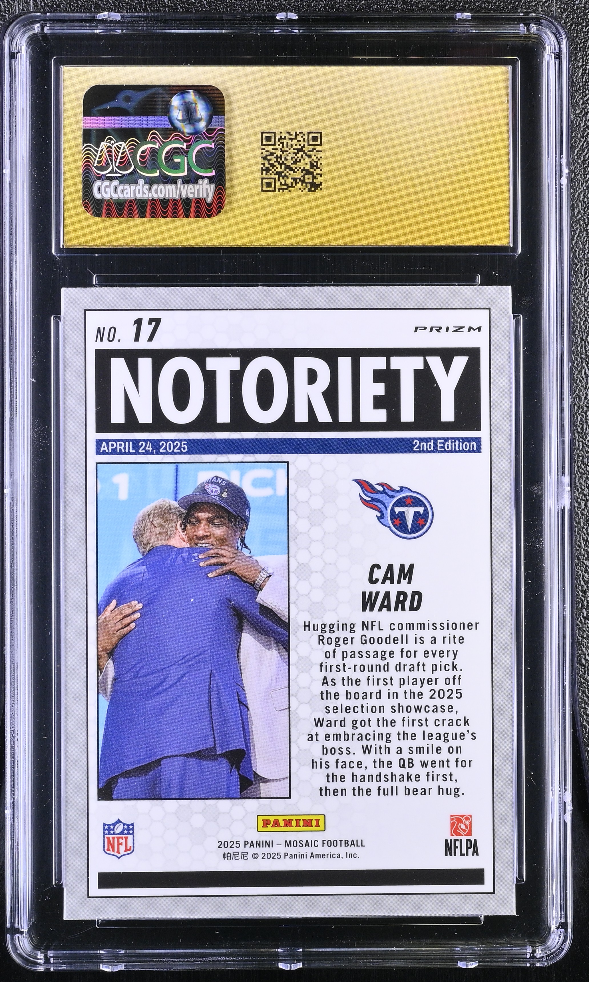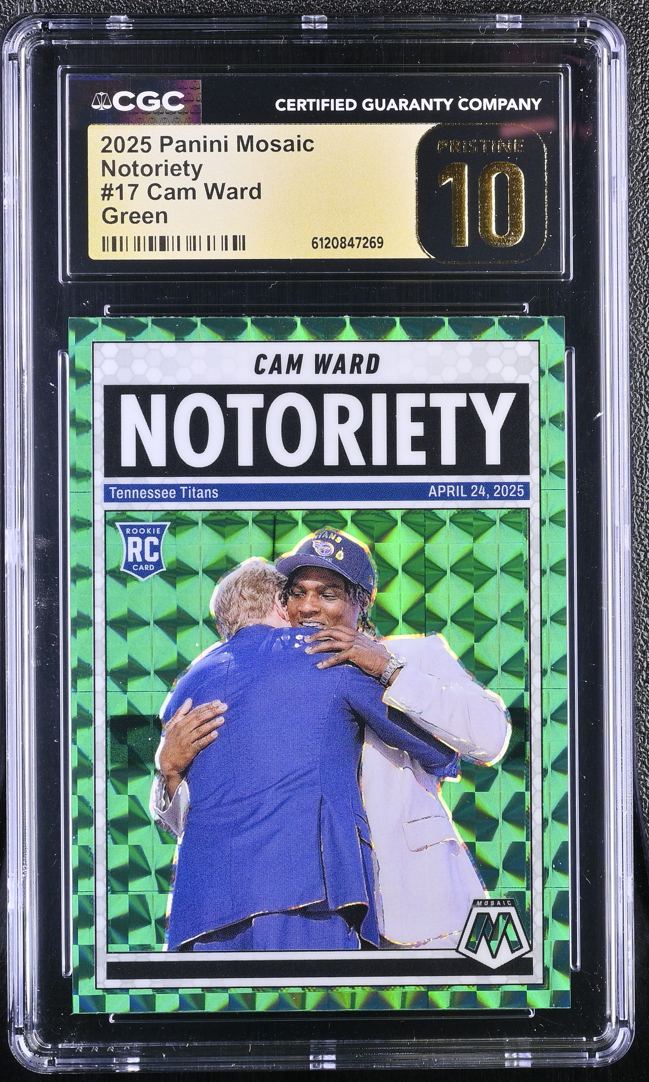Cam Ward 2025 Panini Mosaic Notoriety Green #17 RC (CGC 10 | Black Label)
