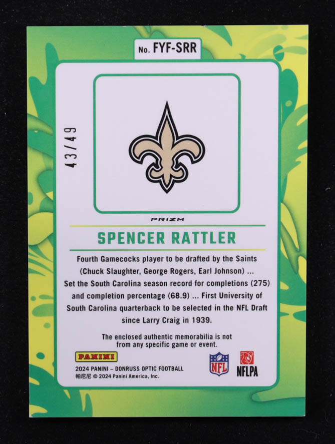 Spencer Rattler 2024 Donruss Optic First Year Fresh Jerseys Ice #37 #43/49 RC