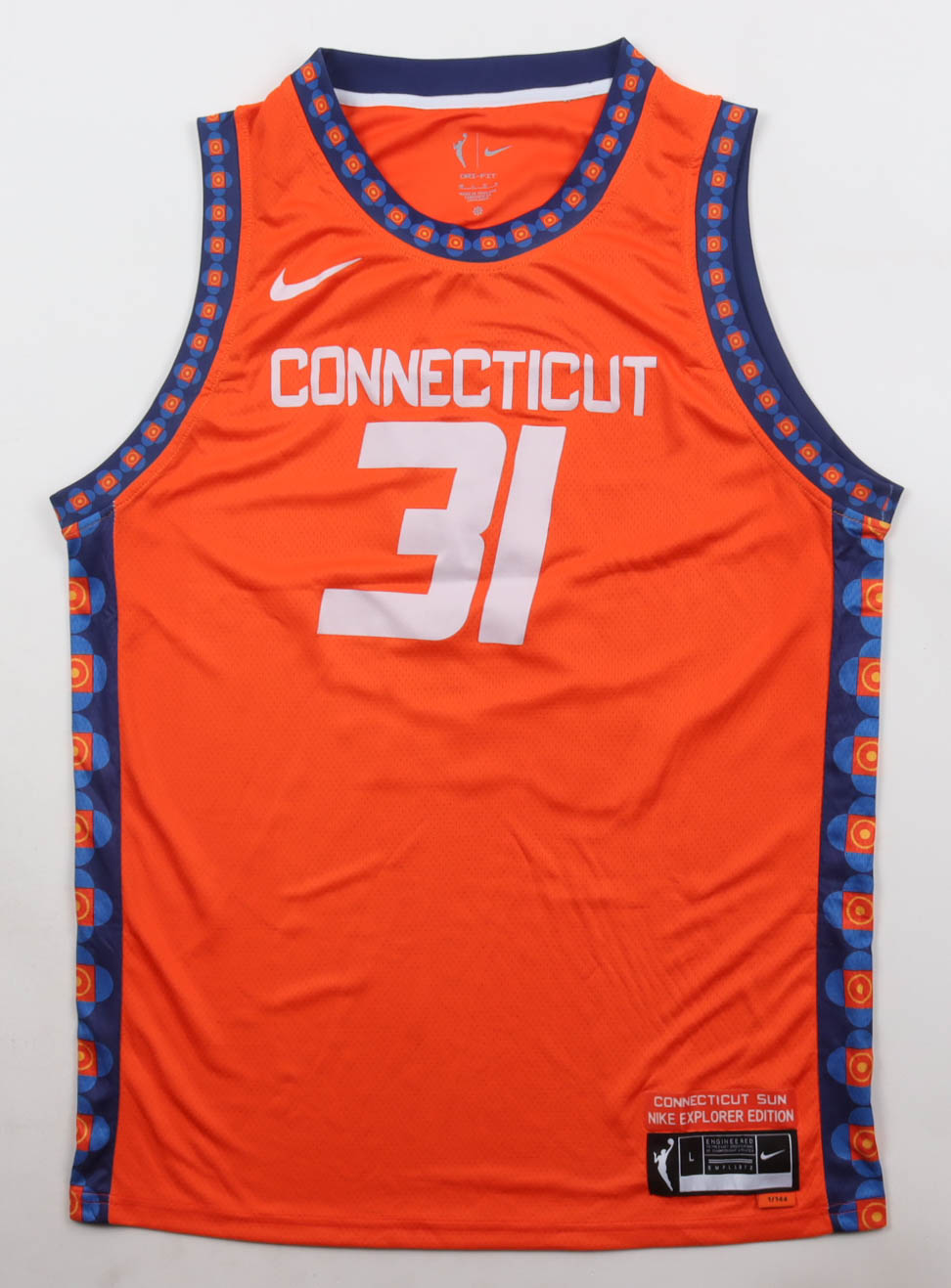Nike authentic jersey with everything pressed on, size 48. Hand-signed by Tina Charles (Connecticut Sun).