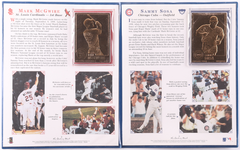 Mark McGwire & Sammy Sosa 1998 Danbury Mint 23Kt Gold Cards in Presentation Binder