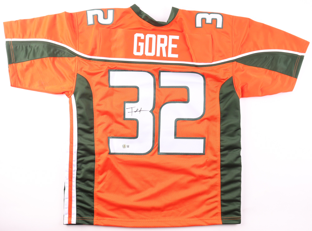Custom jersey with everything sewn on, size XL. Hand-signed by Frank Gore.