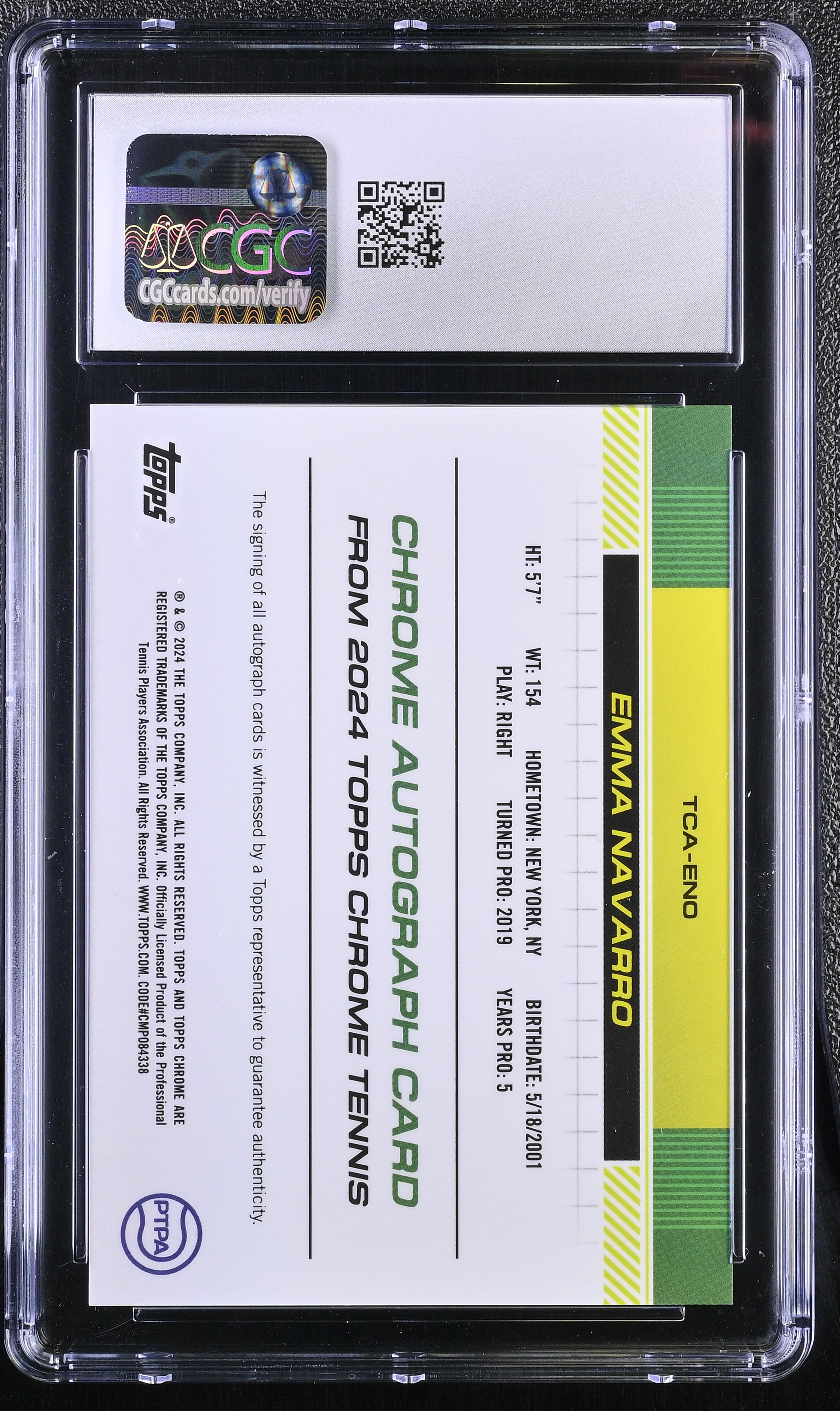 Emma Navarro 2024 Topps Chrome Autographs I #TCAENO (CGC 10 | Autograph Grade 10)
