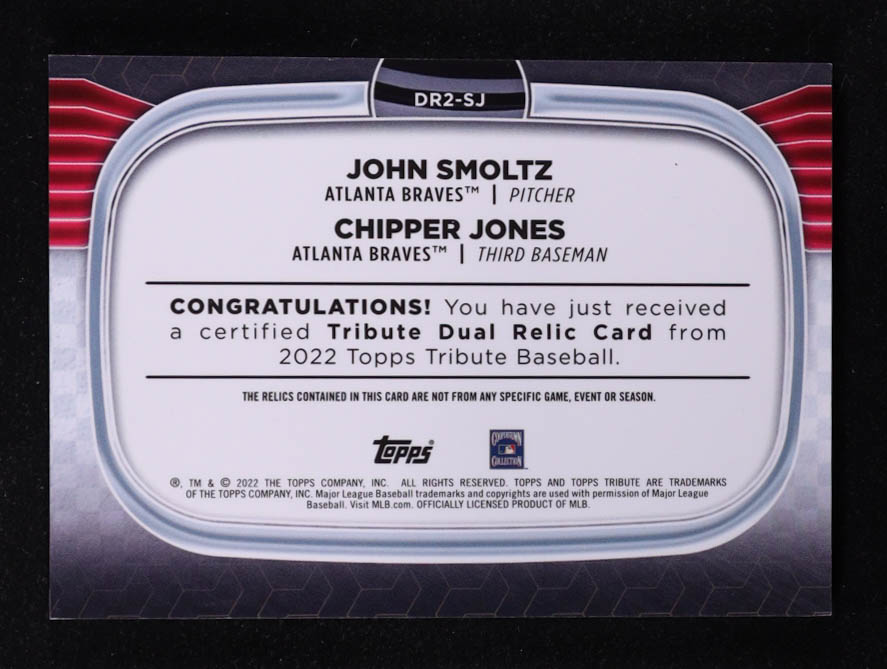 John Smoltz / Chipper Jones 2022 Topps Tribute Dual Player Relics #DR2SJ #092/199