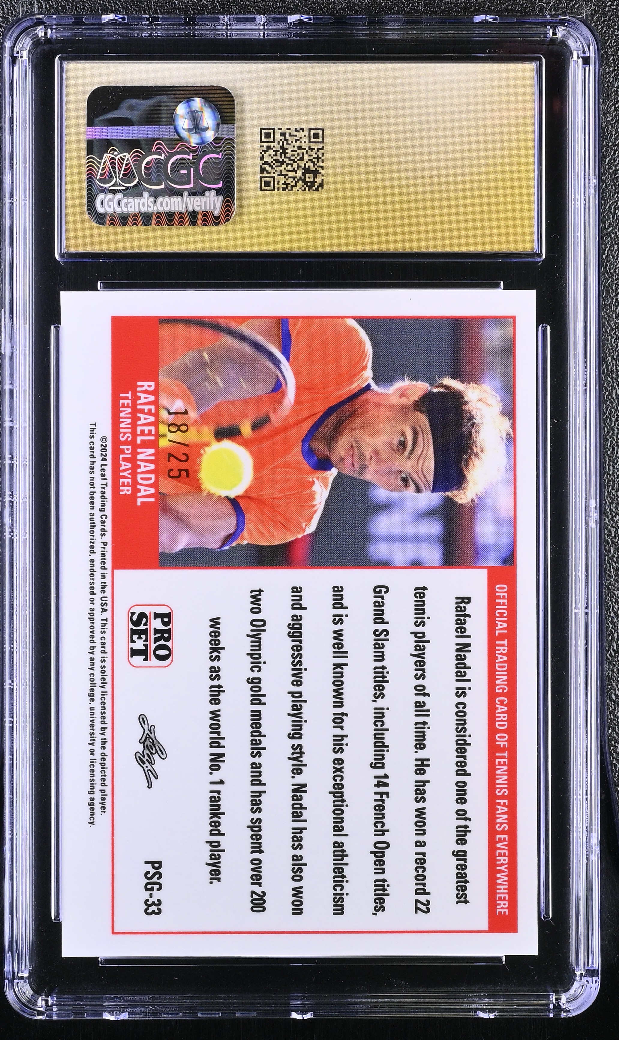 Rafael Nadal 2023 Leaf Web Exclusives Pro Set Blue #PSG33 #18/25 (CGC 10 | Pristine Black Label)