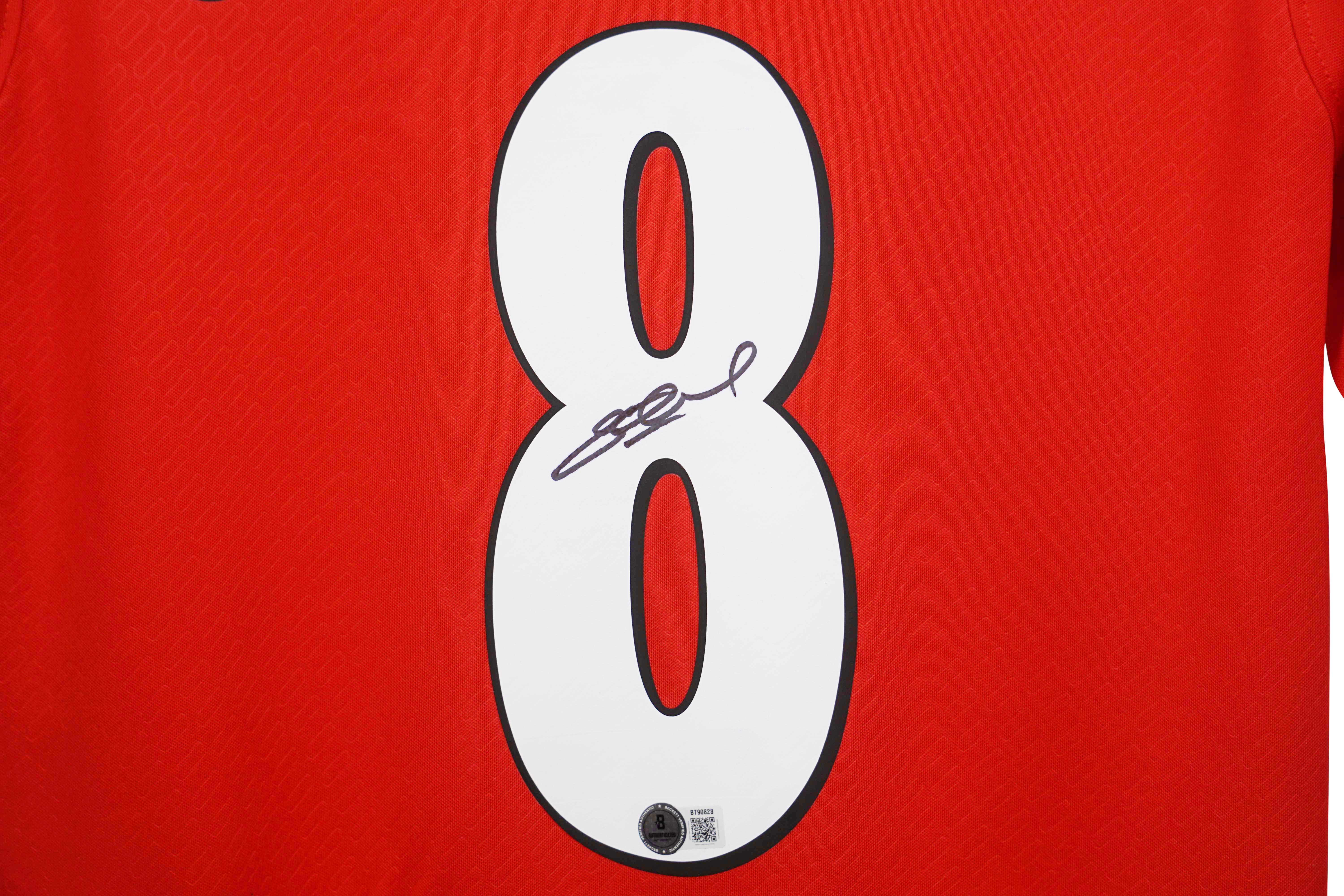 Reebok jersey with everything pressed on, size L. Hand-signed by Steven Gerrard.