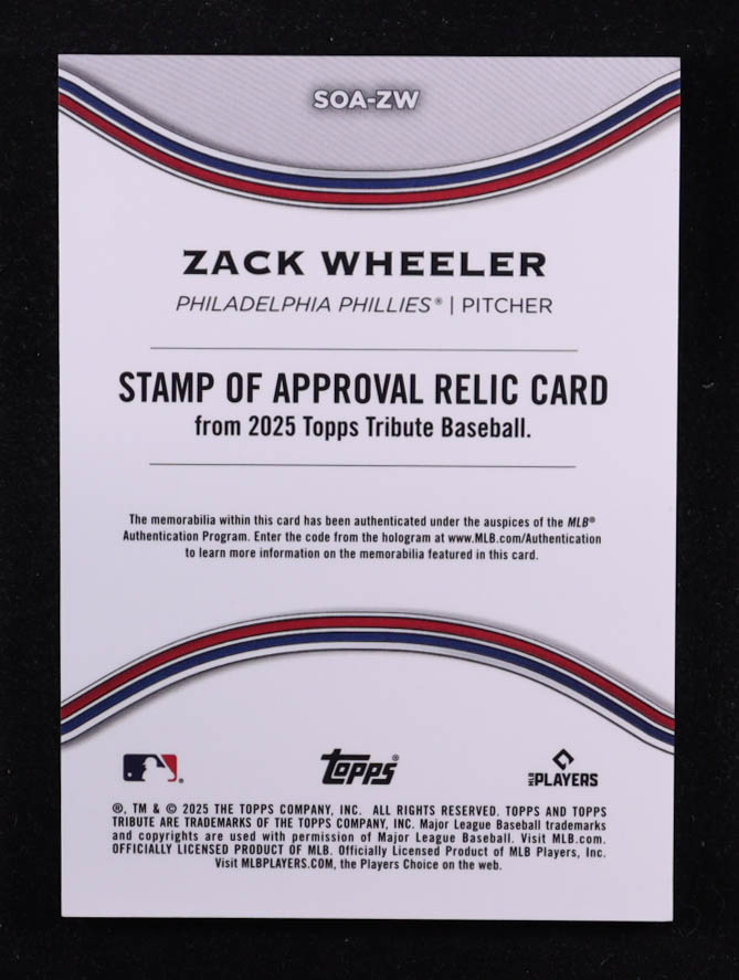 Zack Wheeler 2025 Topps Tribute Stamp of Approval Relics Purple #SOAZW #40/50