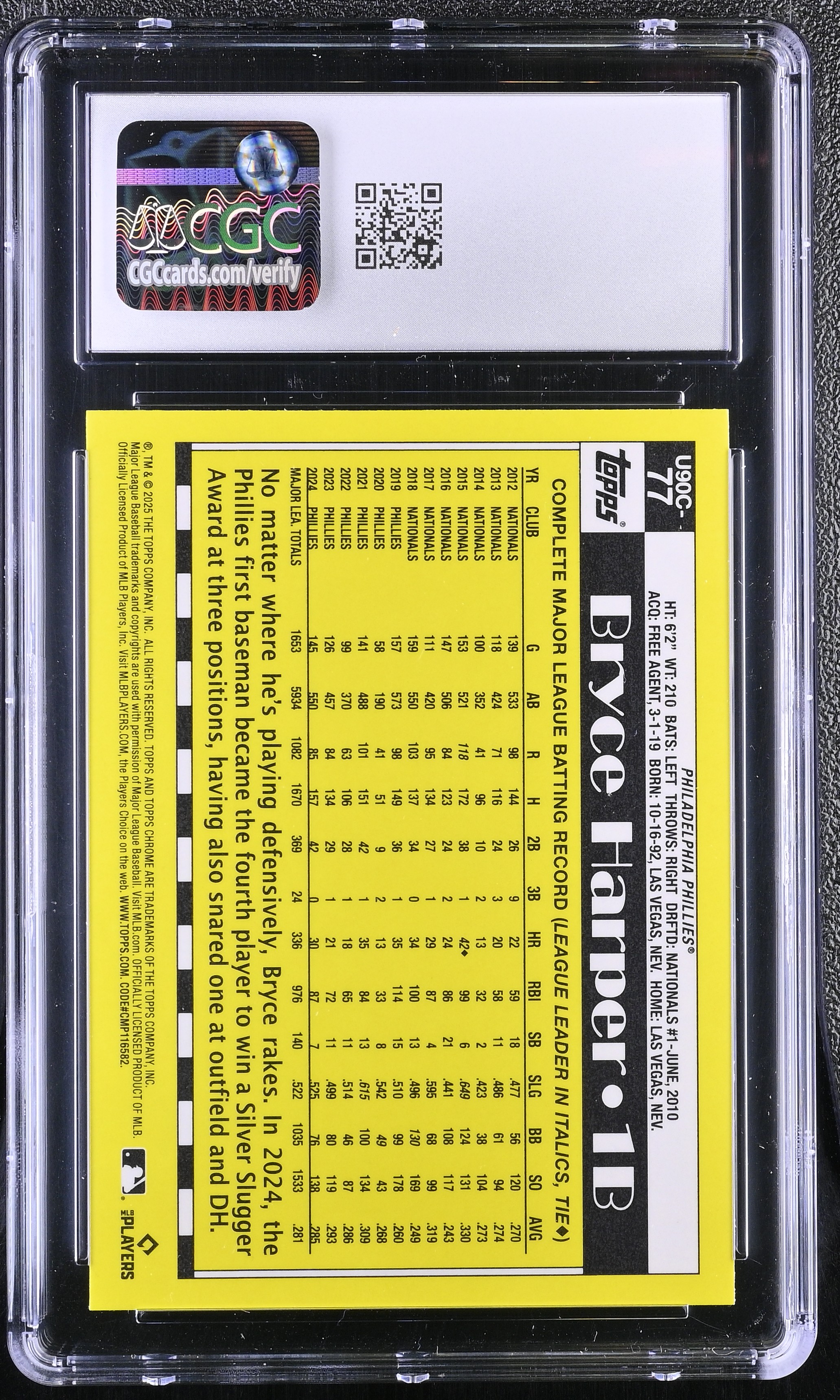 Bryce Harper 2025 Topps Update '90 Topps Silver Pack Chrome #U90C77 (CGC 10)