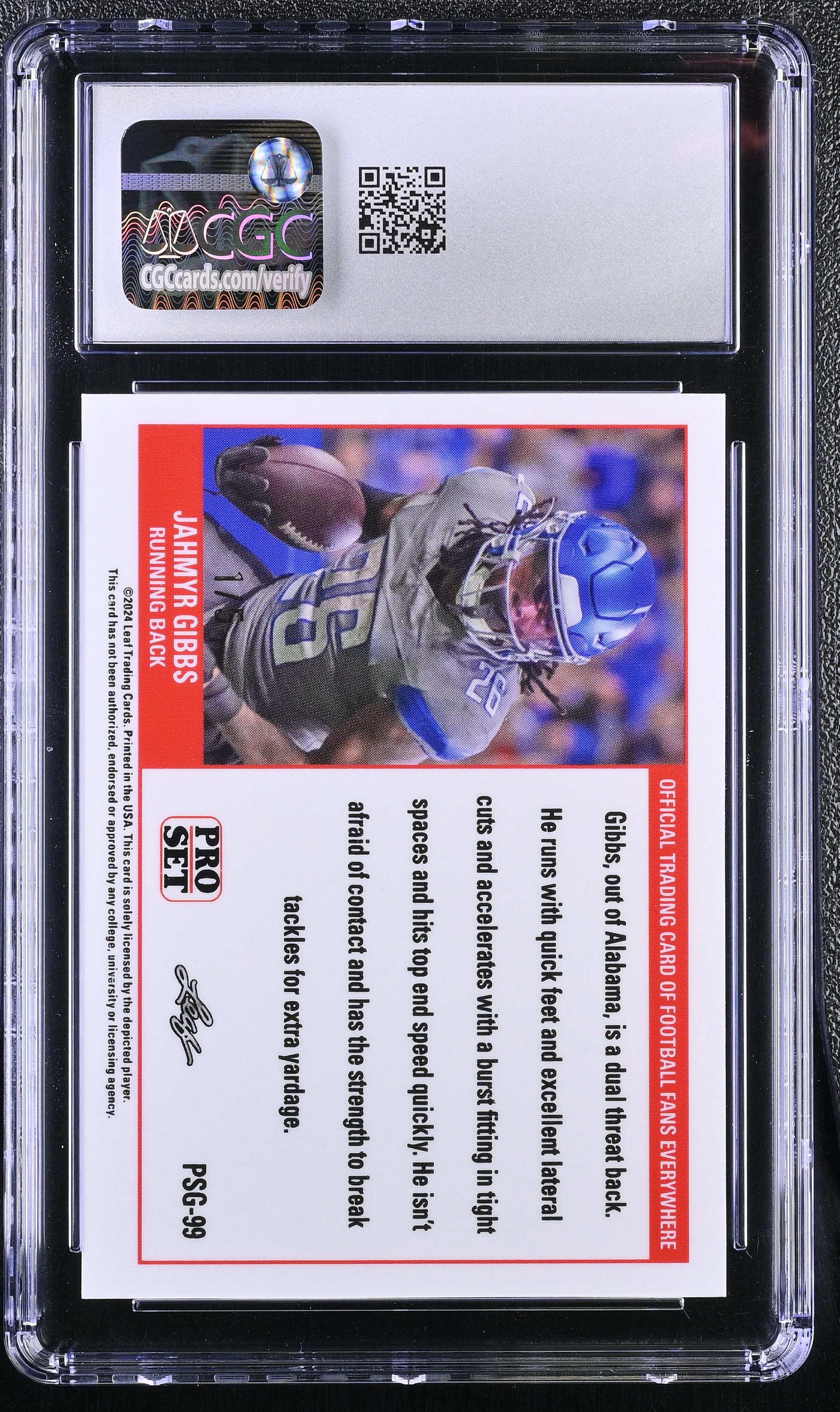 Jahmyr Gibbs 2023 Leaf Web Exclusives Pro Set Rainbow #PSG99 RC #1/5 (CGC 10)