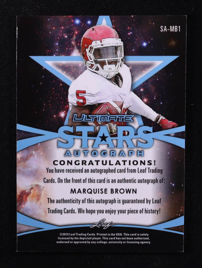 Marquise Brown 2019 Leaf Ultimate Draft Future Stars Autographs Gold #SAMB1 #08/10 RC