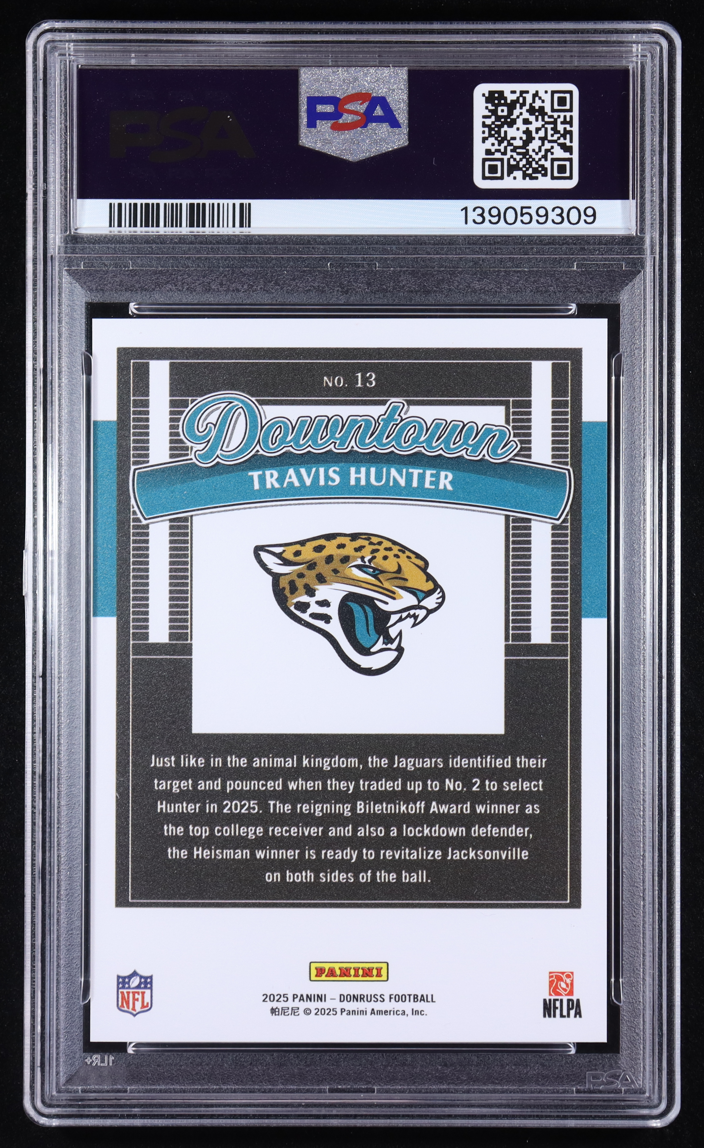 Travis Hunter 2025 Donruss Downtown! #13 RC (PSA 10)