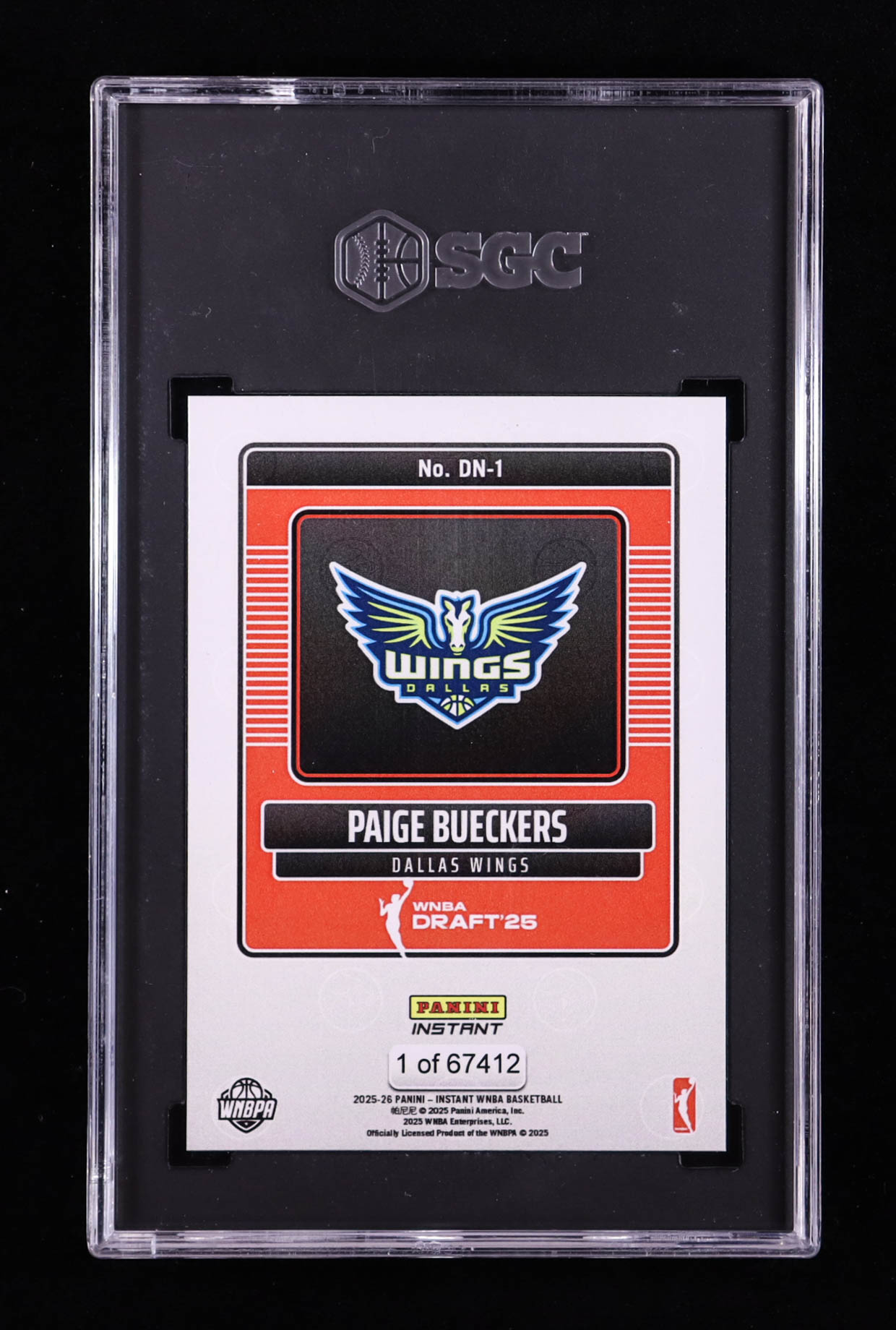 Paige Bueckers 2025-26 Panini Instant WNBA Draft Night #DN-1 RC (SGC 10)