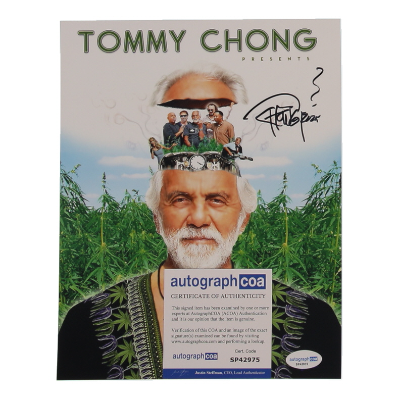 Photo measures 8" x 10" in size and has been hand-signed and inscribed by Tommy Chong.