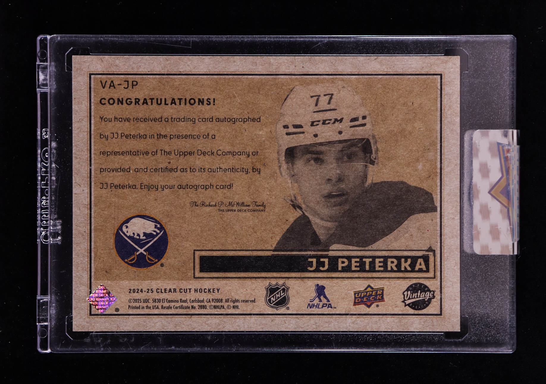 JJ Peterka 2024-25 Upper Deck Clear Cut Vintage Autographs #VAJP