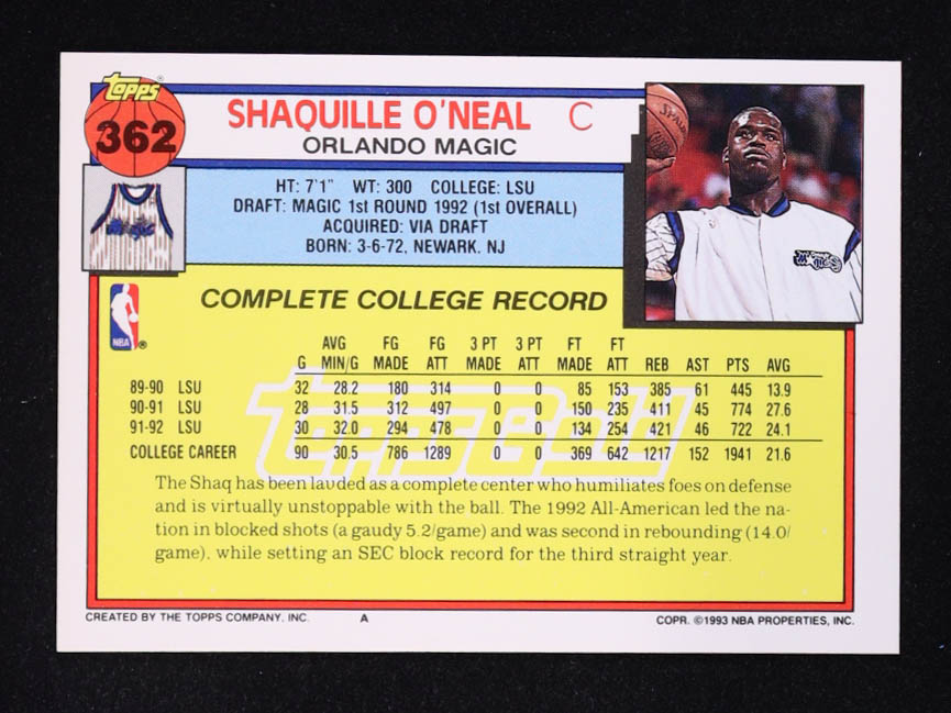 Shaquille O'Neal 1992-93 Topps Gold #362 RC