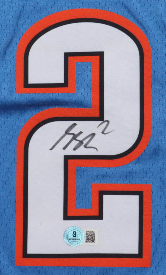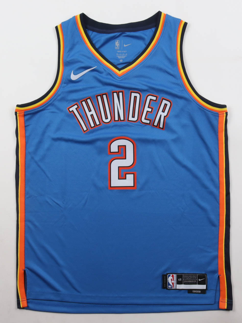 Nike authentic jersey with everything pressed on, size 48. Hand-signed by Shai Gilgeous-Alexander (Oklahoma City Thunder).
