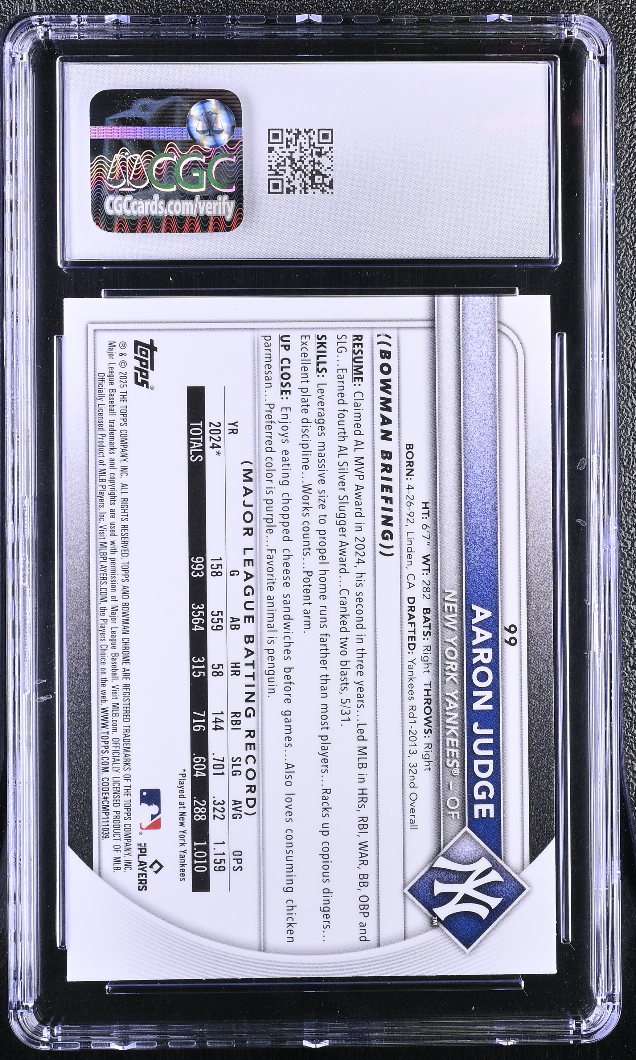 Aaron Judge 2025 Bowman Chrome Mega Box #99 (CGC 9)