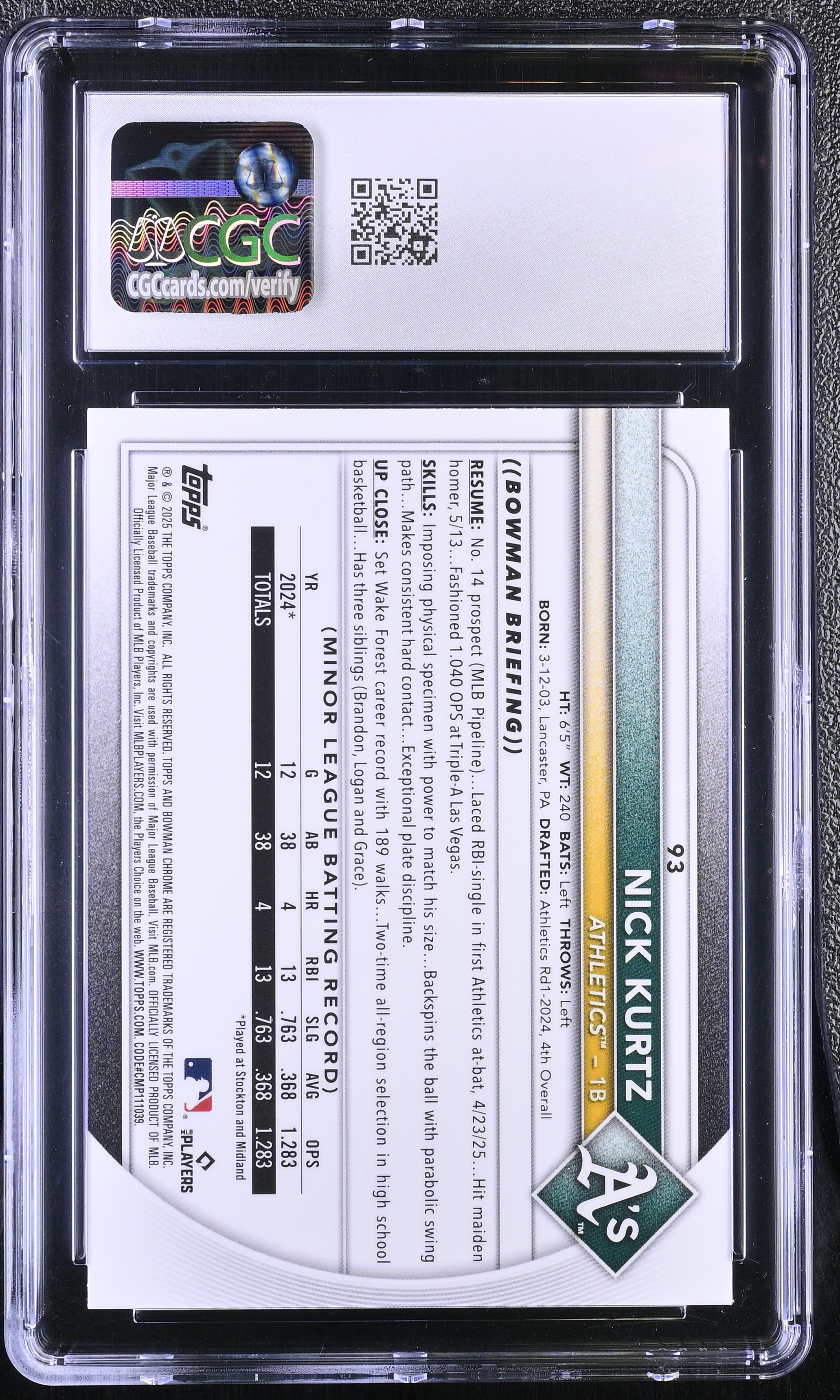 Nick Kurtz 2025 Bowman Chrome Mega Box #93 RC (CGC 10)