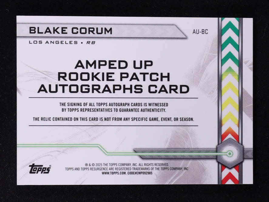 Blake Corum 2024 Topps Resurgence Amped Up Rookie Patch Autographs #AUBC RC