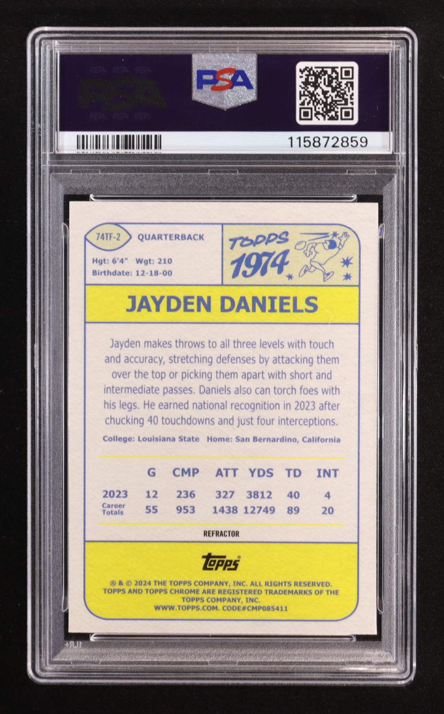 Jayden Daniels 2024 Topps Chrome '74 Topps Refactors #74TF2 RC (PSA 9)
