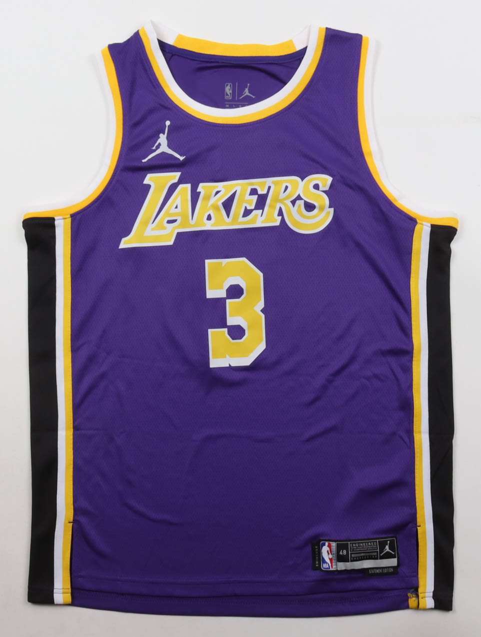 Jordan authentic jersey with everything pressed on, size 48. Hand-signed by Anthony Davis (Los Angeles Lakers).