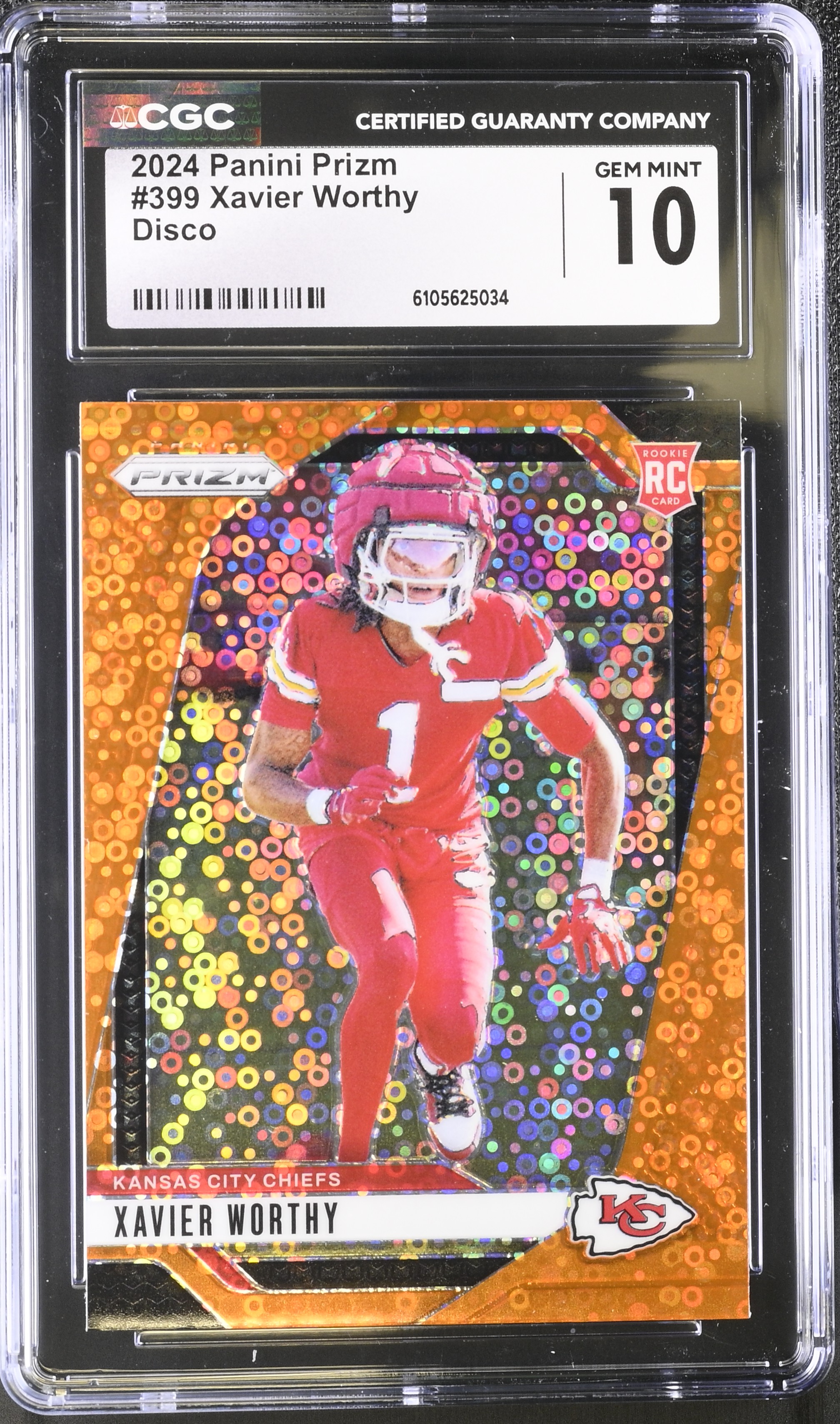 Xavier Worthy 2024 Panini Prizm Prizms Orange Disco #399 RC (CGC 10)