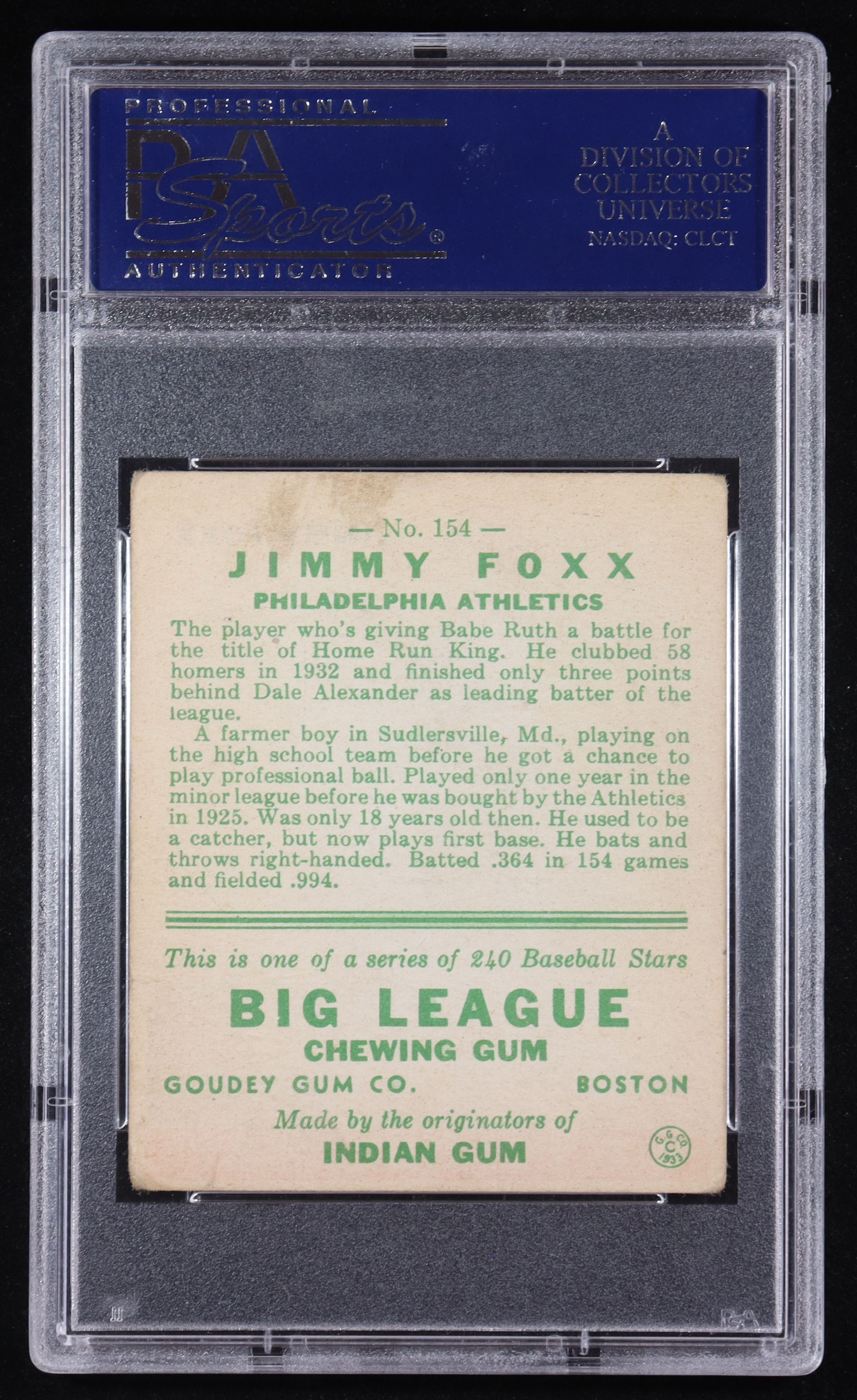 Jimmie Foxx 1933 Goudey #154 RC (PSA 3)