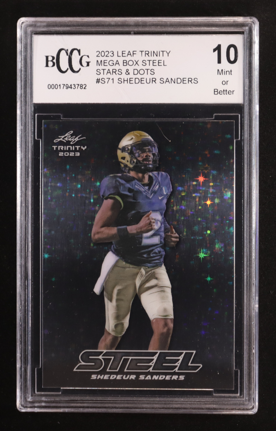 Shedeur Sanders 2023 Leaf Trinity Mega Box Steel Stars & Dots #S71 RC (BCCG 10)