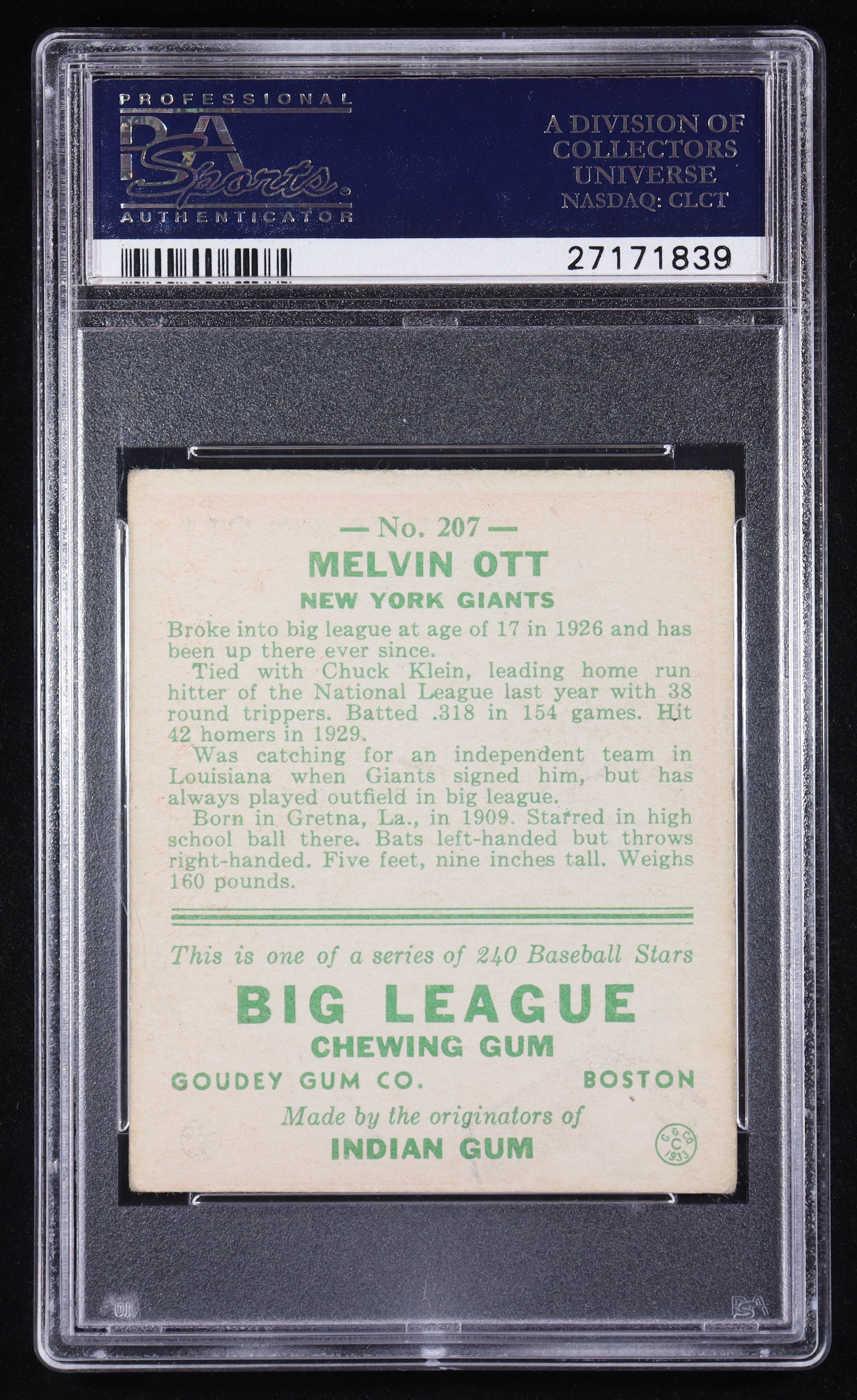 Mel Ott 1933 Goudey #207 RC (PSA 4)