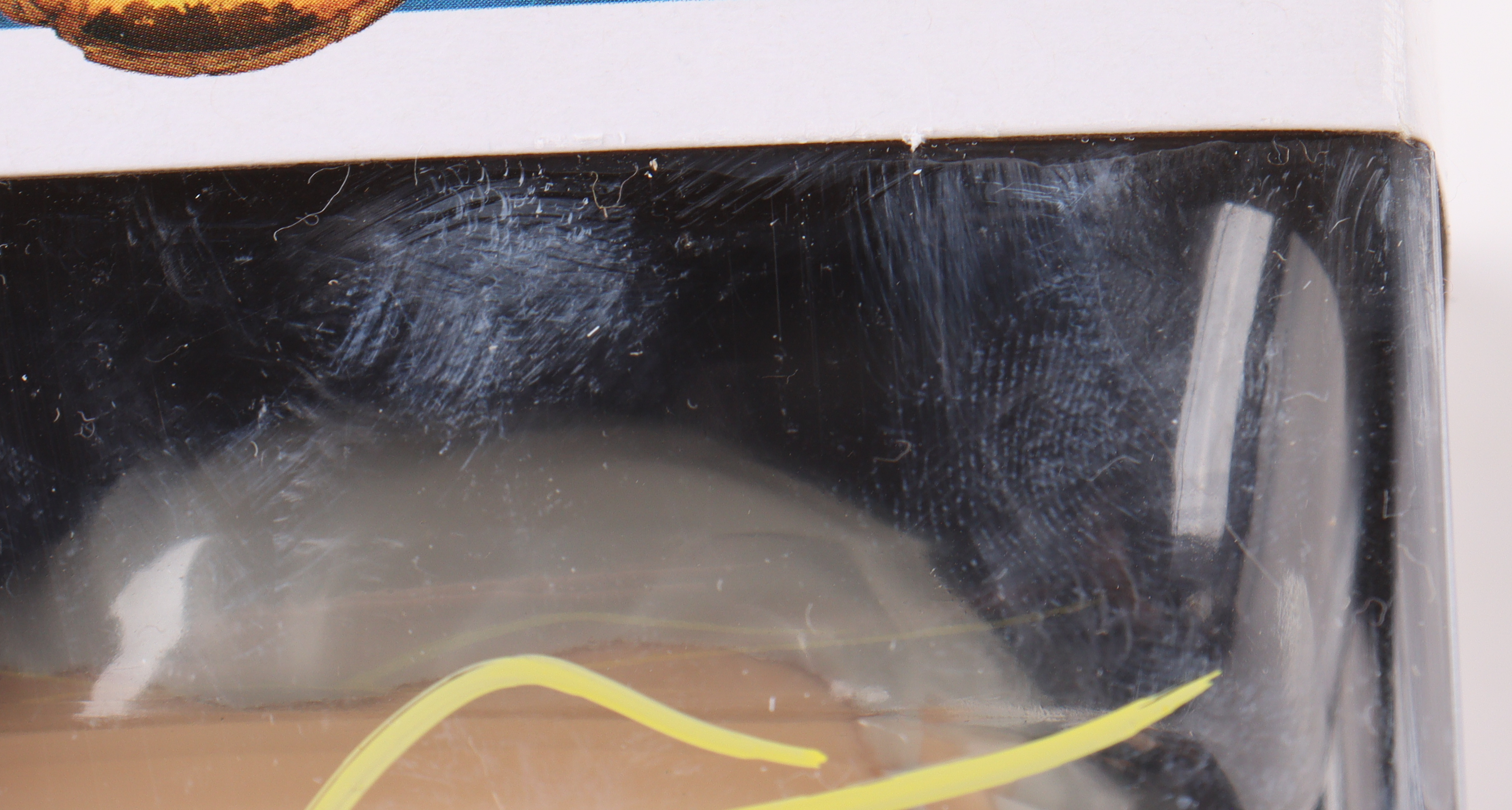 Vinyl figure measures approximately 4" tall and has been hand-signed by Jeff Goldblum. Please note, the window has been swapped. Please see photos for more details regarding the condition of the item as the packaging shows signs of scuffing and damage.