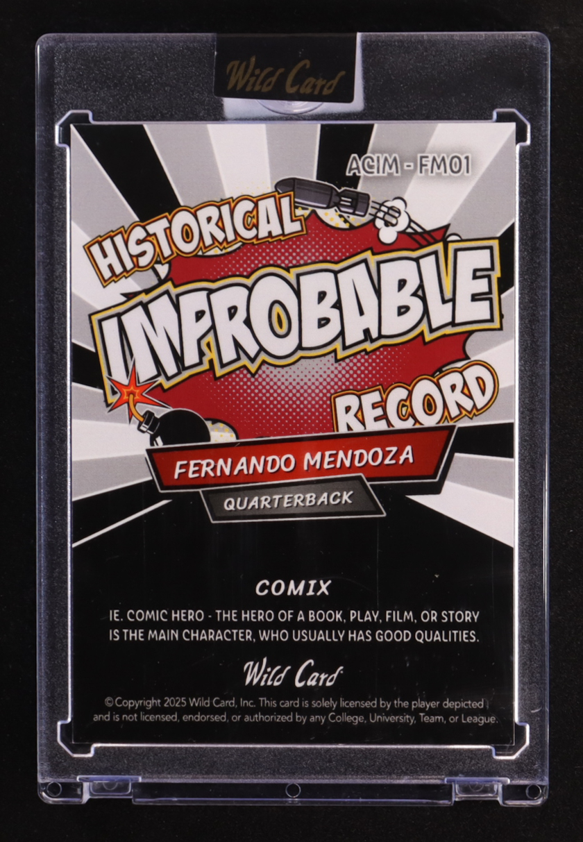 Fernando Mendoza 2025 Wild Card Comix Historical Improbable Record #FM01 #1/1 RC