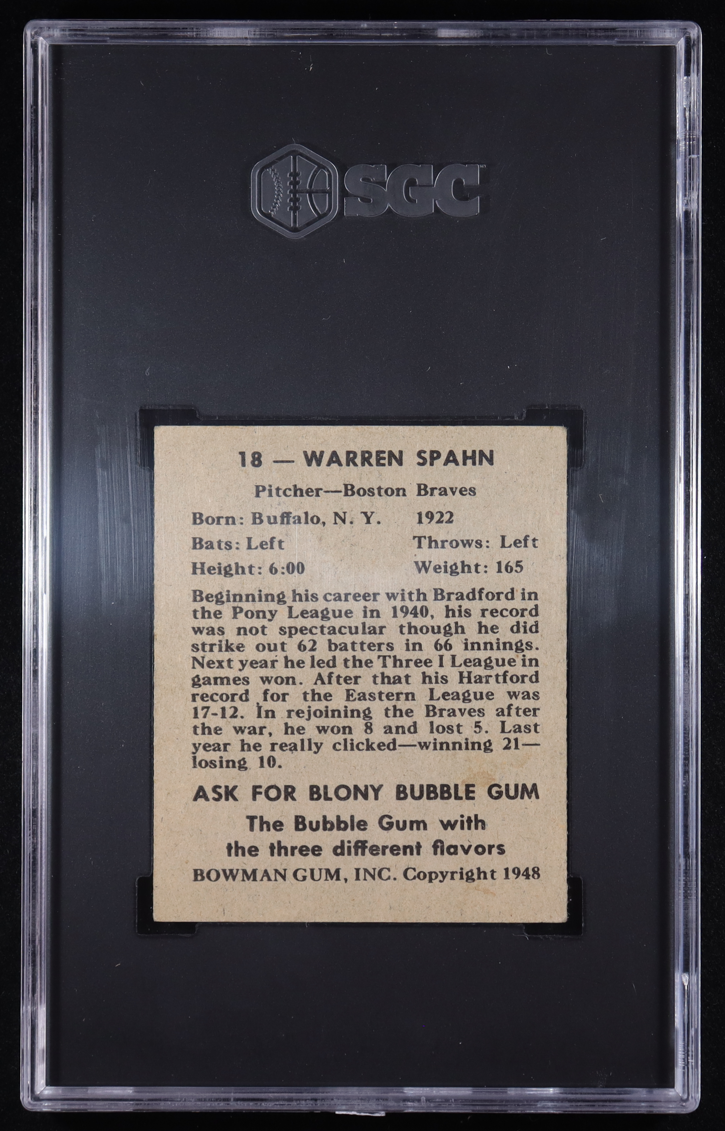 Warren Spahn 1948 Bowman #18 RC (SGC 5)