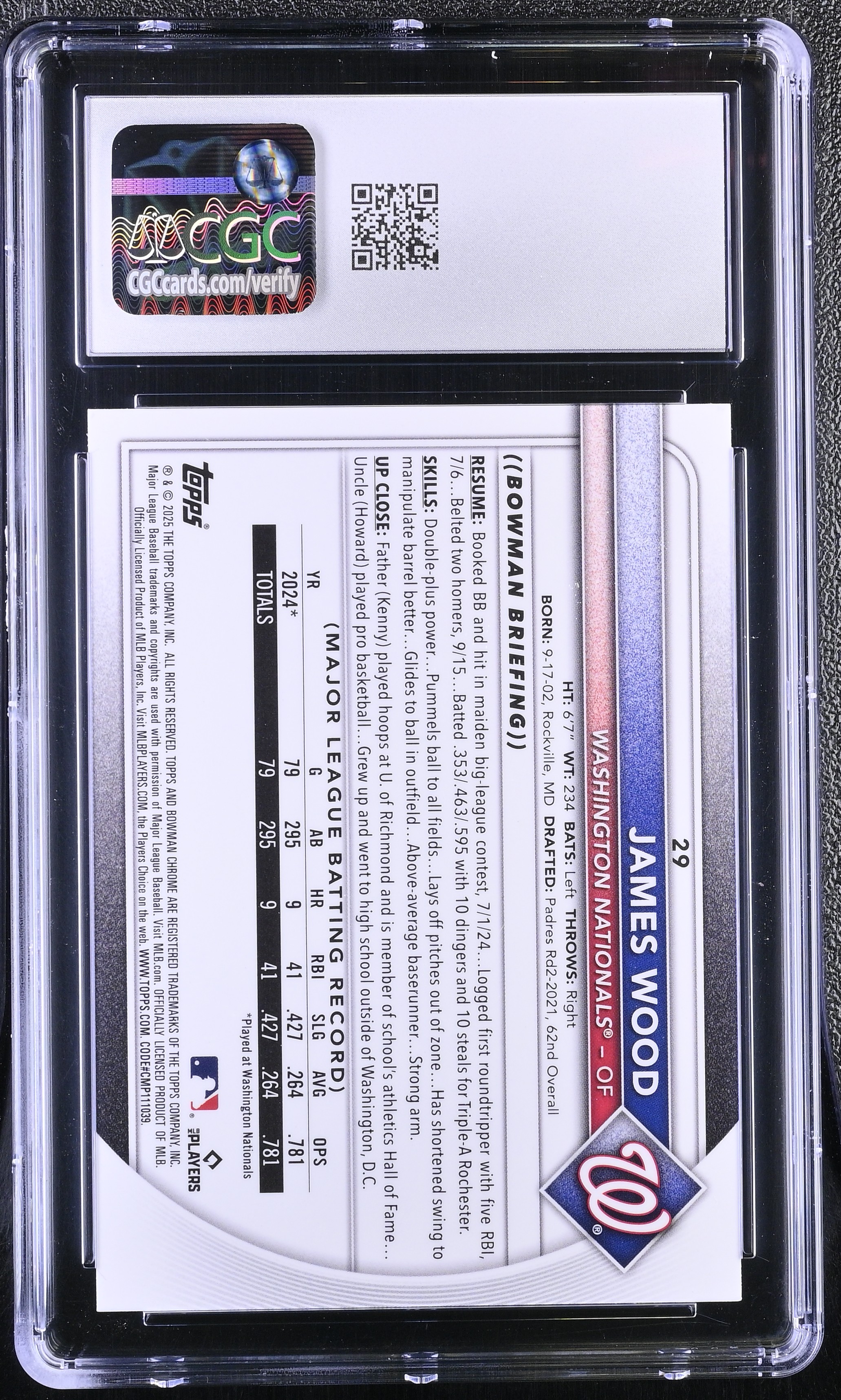 James Wood 2025 Bowman Chrome Mega Box #29 RC (CGC 9)