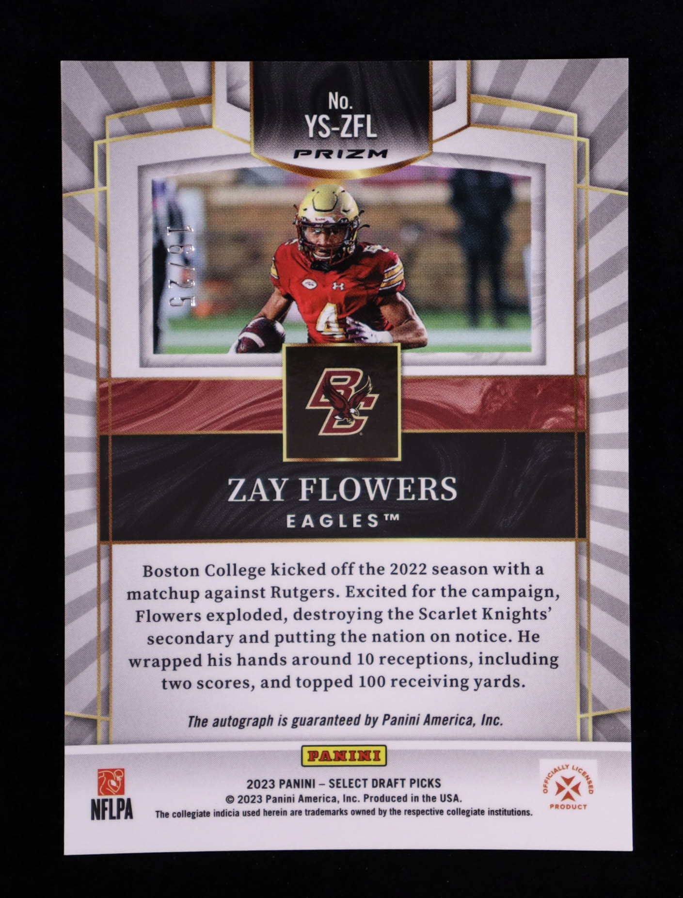 Zay Flowers 2023 Select Draft Picks Youth Explosion Signatures Prizms Purple Lazer #45 #16/25 RC