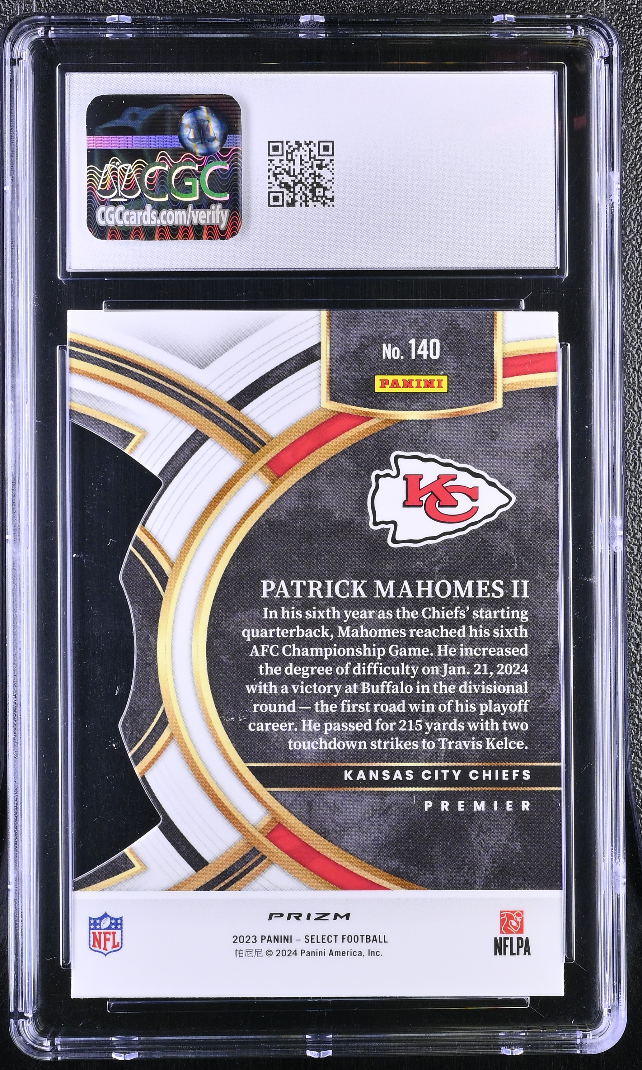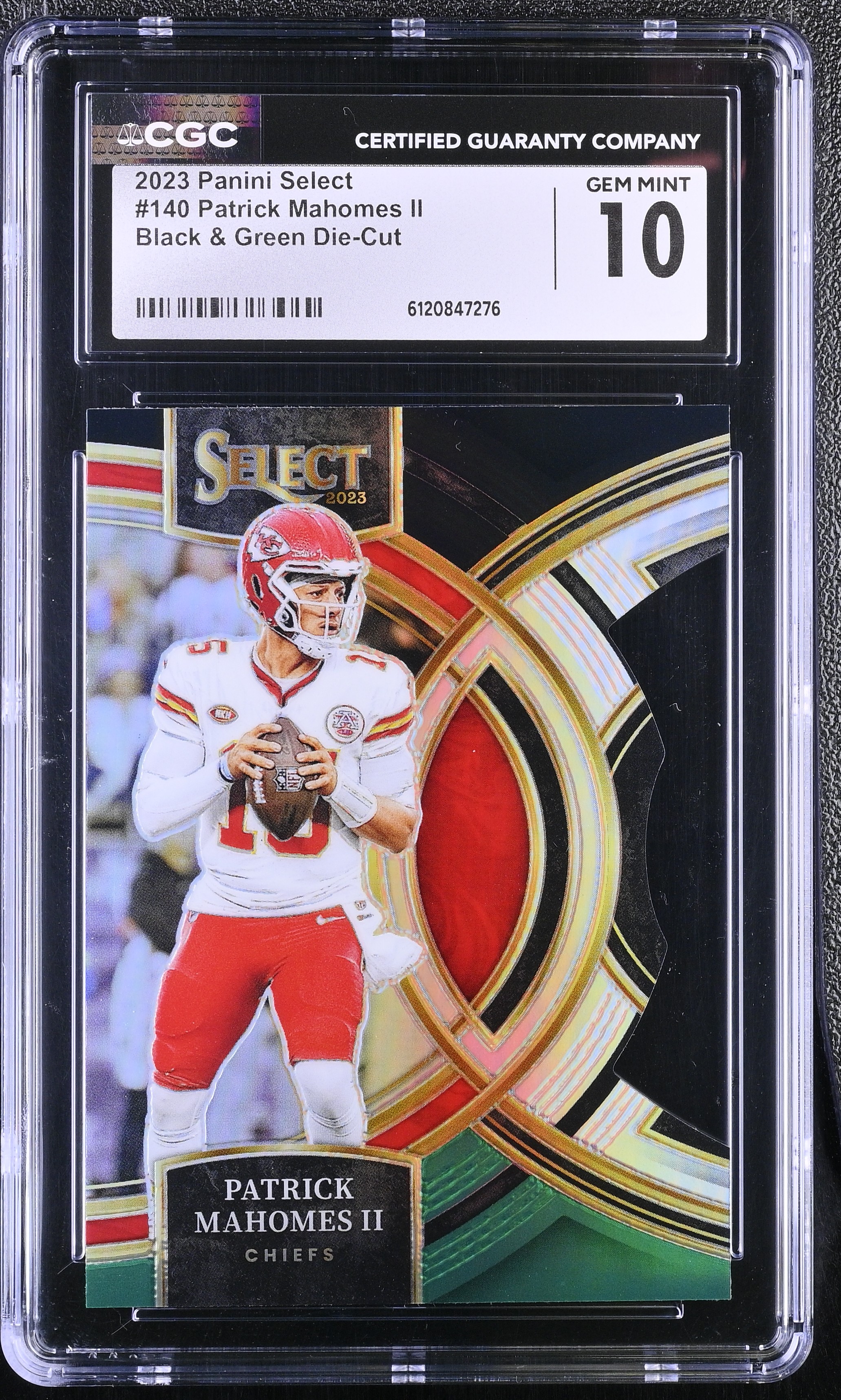 Patrick Mahomes II 2023 Select Prizm Black and Green Die Cut #140 (CGC 10)