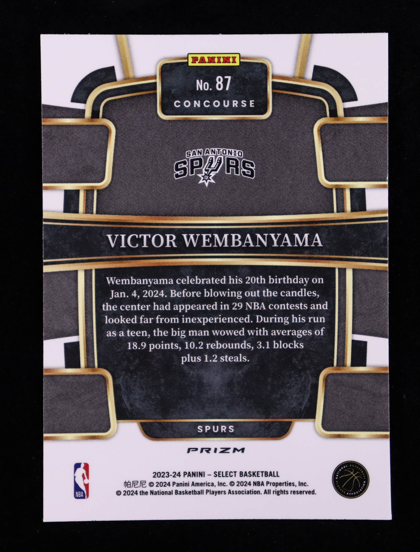 Victor Wembanyama 2023-24 Select Prizms Blue Cracked Ice #87 RC