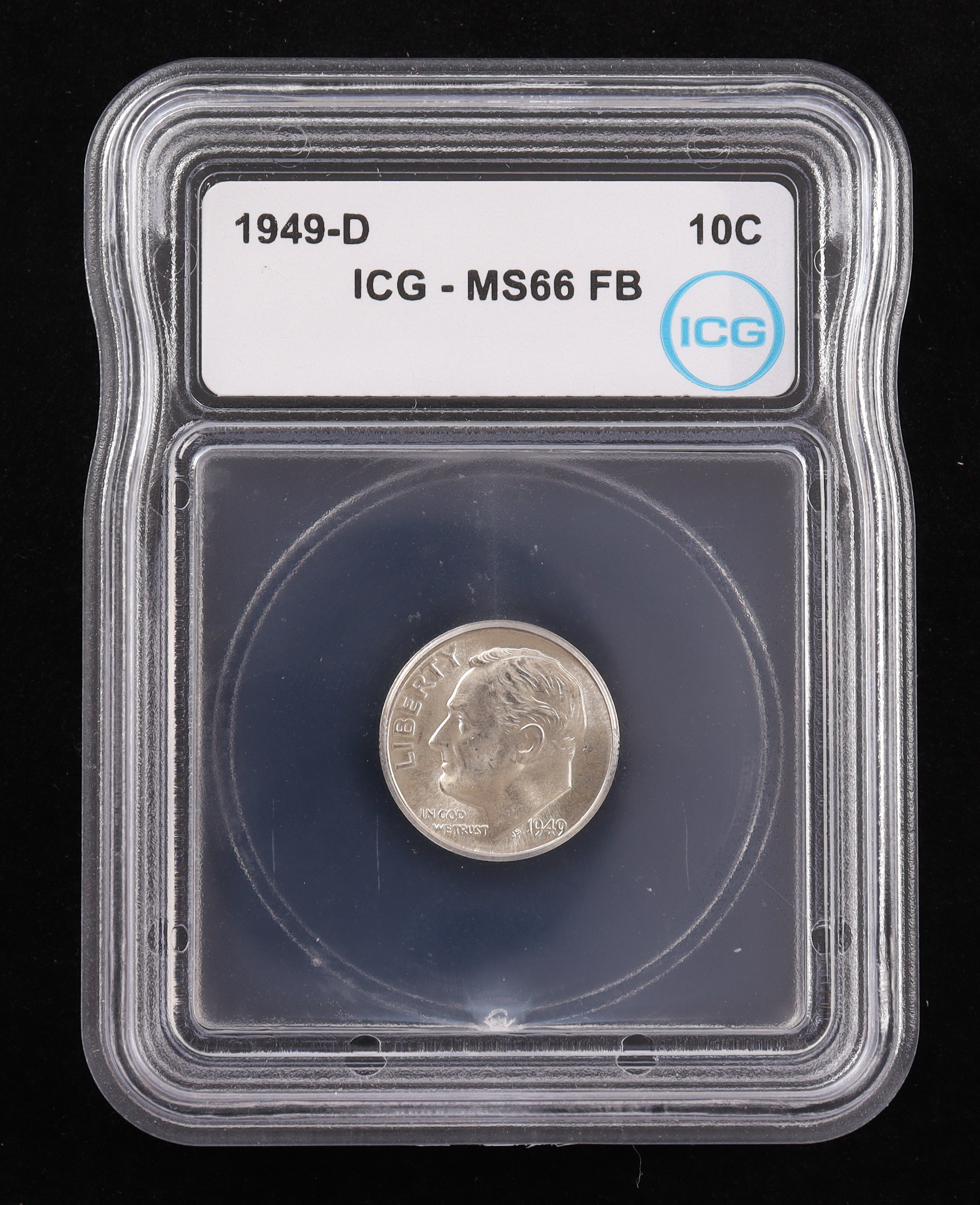 1949-D Roosevelt Silver 10C Dime, Full Bands (IGC MS66 FB)