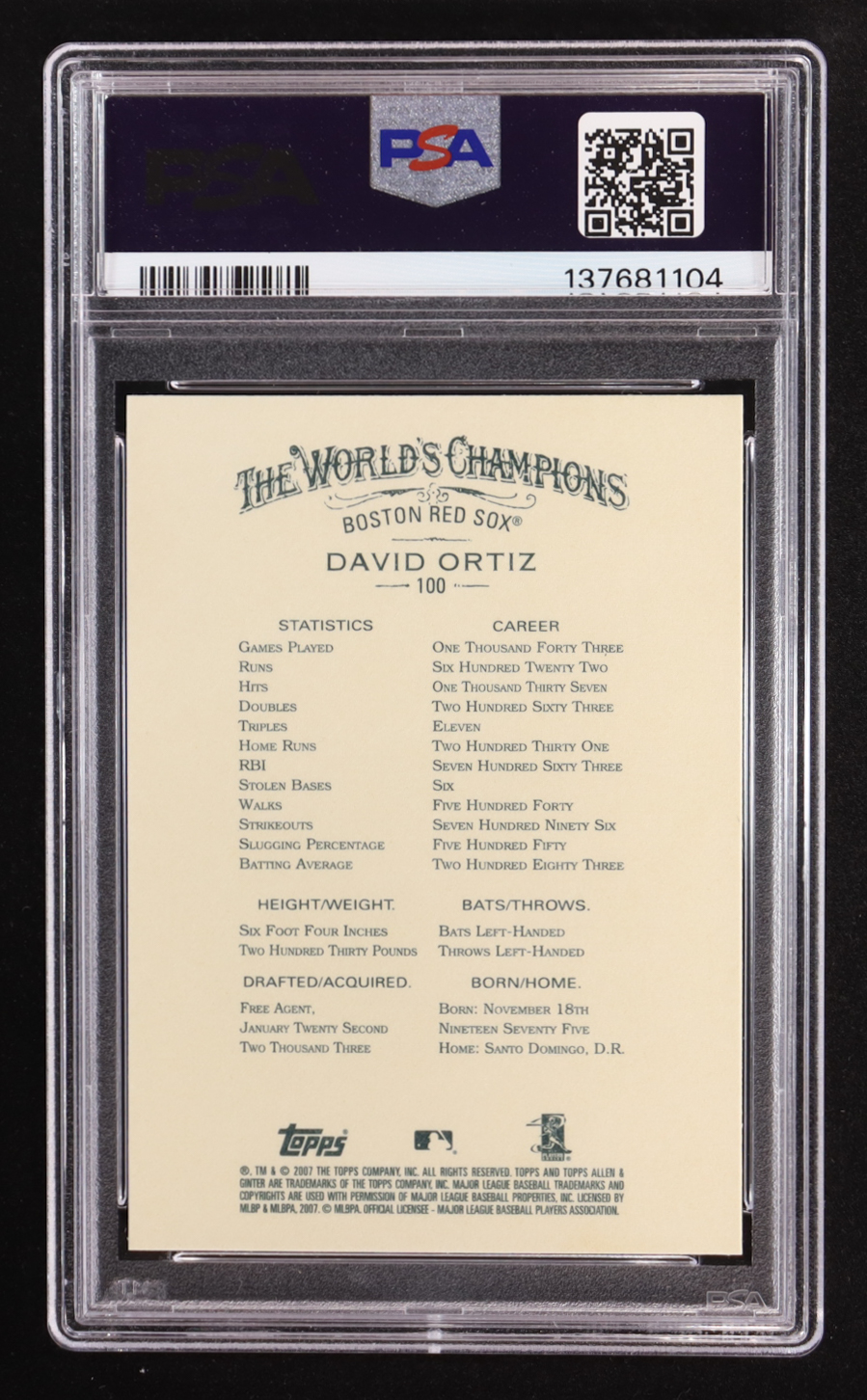 David Ortiz 2007 Topps Allen and Ginter #100 (PSA 10)